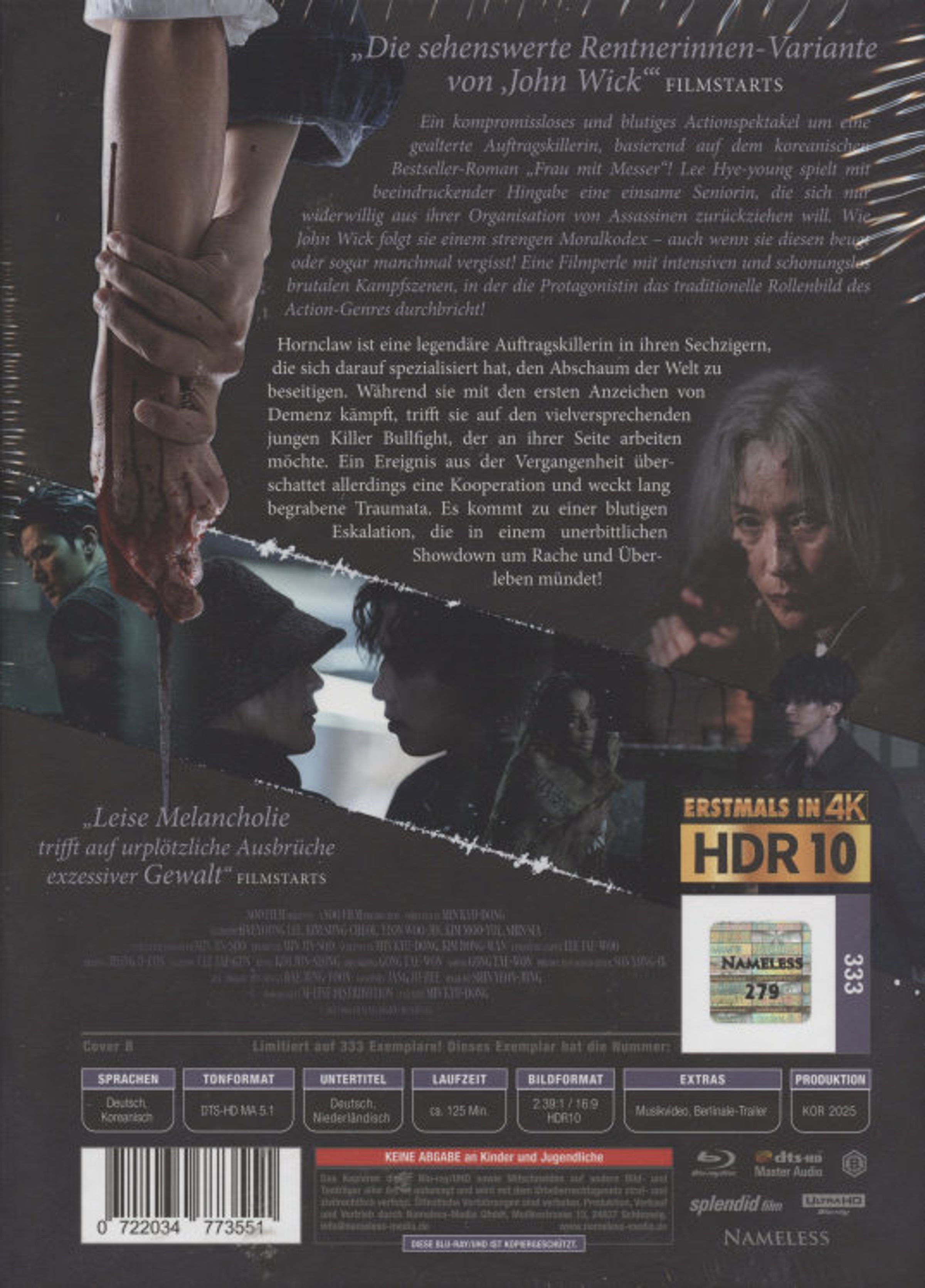 Hornclaw ist eine legendäre Auftragskillerin in ihren Sechzigern, die sich darauf spezialisiert hat, den Abschaum der Welt zu beseitigen. Während sie mit den ersten Anzeichen von Demenz kämpft, trifft sie auf den vielversprechenden jungen Killer Bullfight, der an ihrer Seite arbeiten möchte. Ein Ereignis aus der Vergangenheit überschattet allerdings eine Kooperation und weckt lang begrabene Traumata. Es kommt zu einer blutigen Eskalation, die in einem unerbittlichen Showdown um Rache und Überleben mündet!
