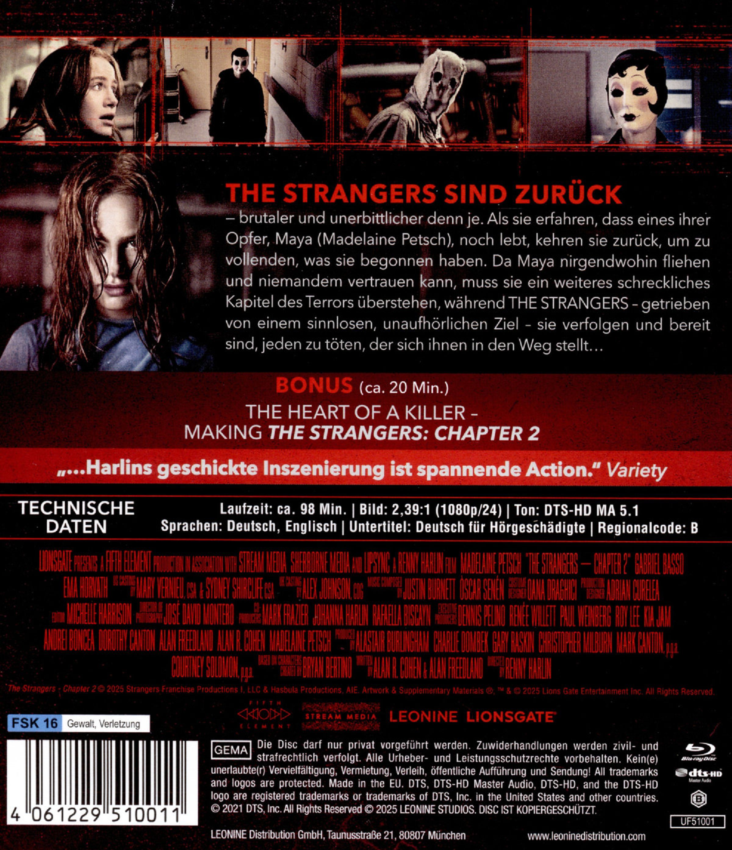THE STRANGERS sind zurück - brutaler und unerbittlicher denn je. Als sie erfahren, dass eines ihrer Opfer, Maya, noch lebt, kehren sie zurück, um zu vollenden, was sie begonnen haben. Da Maya nirgendwohin fliehen und niemandem vertrauen kann, muss sie ein weiteres schreckliches Kapitel des Terrors überstehen, während THE STRANGERS - getrieben von einem sinnlosen, unaufhörlichen Ziel - sie verfolgen und bereit sind, jeden zu töten, der sich ihnen in den Weg stellt...