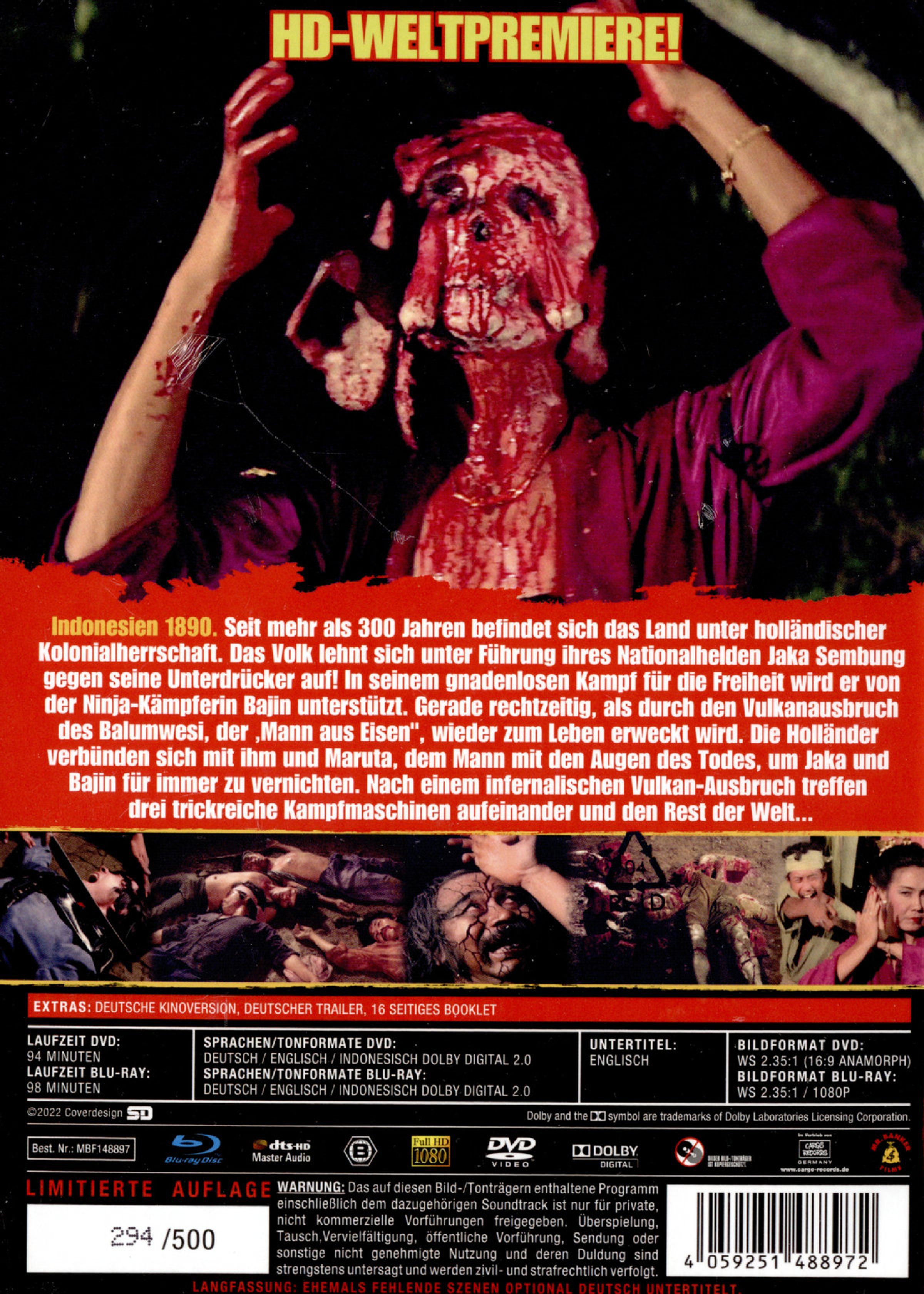 Indonesien 1890. Seit mehr als 300 Jahren befindet sich das Land unter holländischer Kolonialherrschaft. Das Volk lehnt sich unter Führung ihres Nationalhelden Jaka Sembung gegen seine Unterdrücker auf! In seinem gnadenlosen Kampf für die Freiheit wird er von der Ninja-Kämpferin Bajin unterstützt. Gerade rechtzeitig, als durch den Vulkanausbruch des Balumwesi, der »Mann aus Eisen«, wieder zum Leben erweckt wird. Die Holländer verbünden sich mit ihm und Maruta, dem Mann mit den Augen des Todes, um Jaka und Bajin für immer zu vernichten. Nach einem infernalischen Vulkan-Ausbruch treffen drei trickreiche Kampfmaschinen aufeinander und den Rest der Welt...