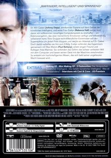 Der renommierte Wissenschaftler Dr. Will Caster arbeitet gemeinsam mit seiner Frau Evelyn auf dem Gebiet der technologischen Singularität. Durch die Erschaffung eines Computersystems, dessen komplexe Verschaltungen wie menschliche Gehirne funktionieren, streben sie die Transzendenz künstlicher Intelligenz an. Ein technologischer Quantensprung, der ihnen zwar viel Lob einbringt, sie jedoch auch zur Zielscheibe von fanatischen Technik-Skeptikern macht. Bei einem Überfall auf das Labor wird Will tödlich verletzt. Hin und her gerissen zwischen Liebe und Forscherdrang führt Evelyn eine drastische Maßnahme durch: Gemeinsam mit dem Forscher Max Waters, einem engen Freund und Kollegen ihres Mannes, verbindet sie Wills unversehrtes Gehirn mit dem Computersystem und überträgt seine Informationen auf den Rechner. Ein Experiment mit unvorhersehbaren Folgen….