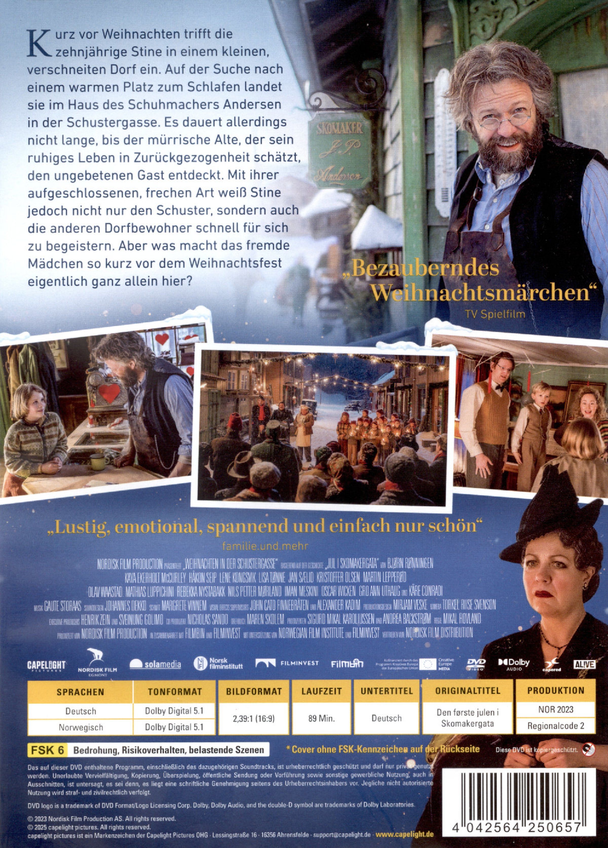 Kurz vor Weihnachten trifft die zehnjährige Stine in einem kleinen, verschneiten Dorf ein. Auf der Suche nach einem warmen Platz zum Schlafen landet sie im Haus des Schuhmachers Andersen in der Schustergasse. Es dauert allerdings nicht lange, bis der mürrische Alte, der sein ruhiges Leben in Zurückgezogenheit schätzt, den ungebetenen Gast entdeckt. Mit ihrer aufgeschlossenen, frechen Art weiß Stine jedoch nicht nur den Schuster, sondern auch die anderen Dorfbewohner schnell für sich zu begeistern. Aber was macht das fremde Mädchen so kurz vor dem Weihnachtsfest eigentlich ganz allein hier?