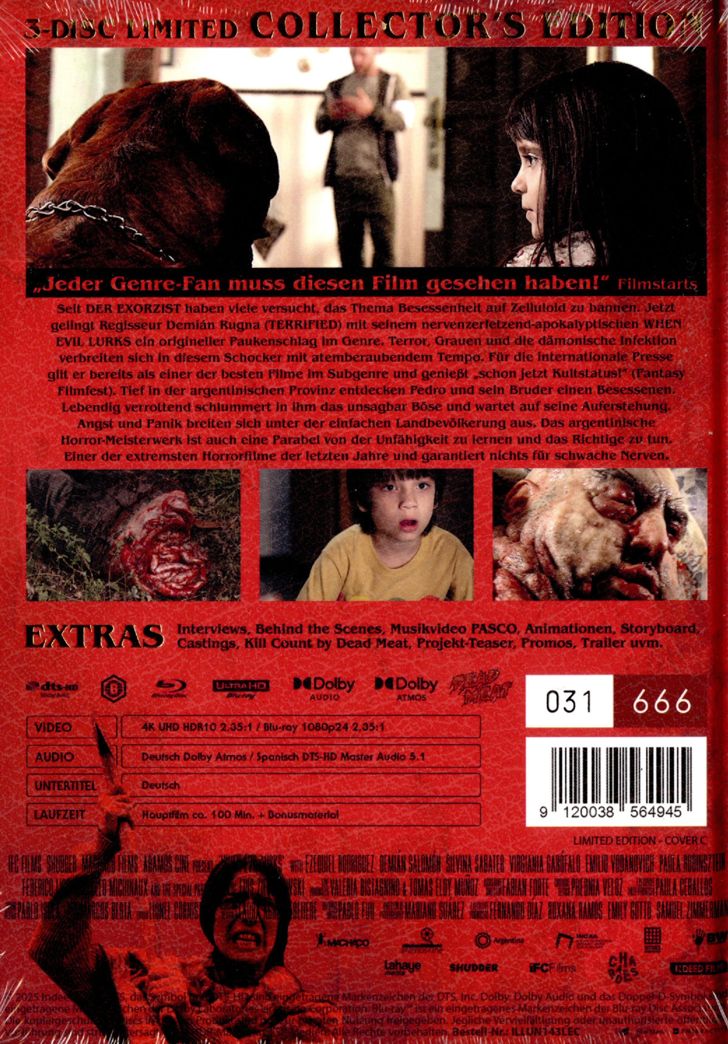 Seit DER EXORZIST haben viele versucht, das Thema Besessenheit auf Zelluloid zu bannen. Jetzt gelingt Regisseur Demián Rugna mit seinem nervenzerfetzend-apokalyptischen WHEN EVIL LURKS ein origineller Paukenschlag im Genre. Terror, Grauen und die dämonische Infektion verbreiten sich in diesem Schocker mit atemberaubendem Tempo. Bei Rotten Tomatoes mit sensationellen 96% bewertet, gilt er weltweit als einer der besten Filme im Subgenre. Aber seien sie gewarnt. Das Böse bricht hier mit kompromissloser Härte aus.