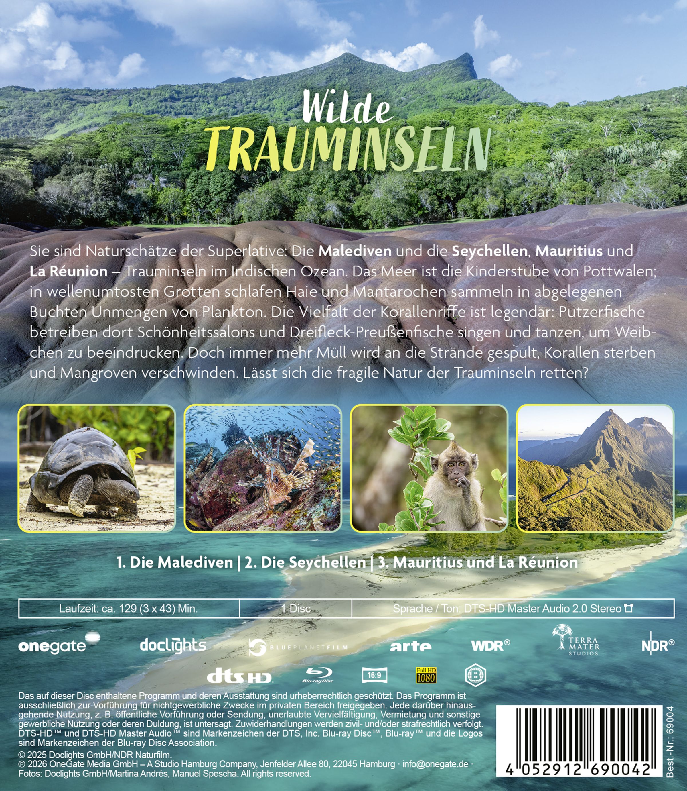 Sie sind Naturschätze der Superlative: Die Malediven und die Seychellen, Mauritius und La Réunion - Trauminseln im Indischen Ozean. Das Meer ist die Kinderstube von Pottwalen; in wellenumtosten Grotten schlafen Haie und Mantarochen sammeln in abgelegenen Buchten Unmengen von Plankton. Die Vielfalt der Korallenriffe ist legendär: Putzerfische betreiben dort Schönheitssalons und Dreifleck-Preußenfische singen und tanzen, um Weibchen zu beeindrucken. Doch immer mehr Müll wird an die Strände gespült, Korallen sterben und Mangroven verschwinden. Lässt sich die fragile Natur der Trauminseln retten?
