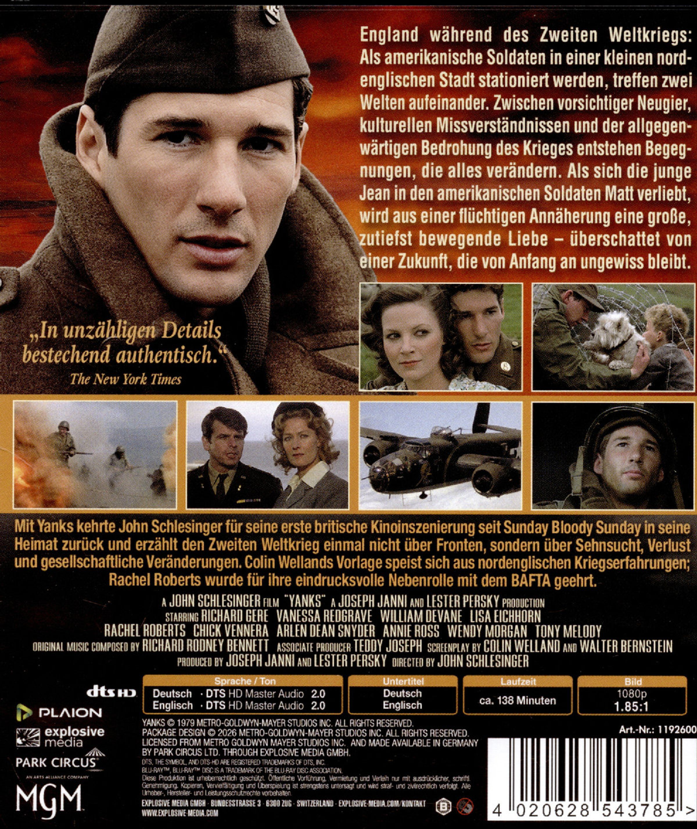 "YANKS: GESTERN WAREN WIR NOCH FREMDE" mit Richard Gere. Militärszenen mit Soldaten, Explosionen, Flugzeugen und einem Paar. FSK 12., Blu-ray Disc