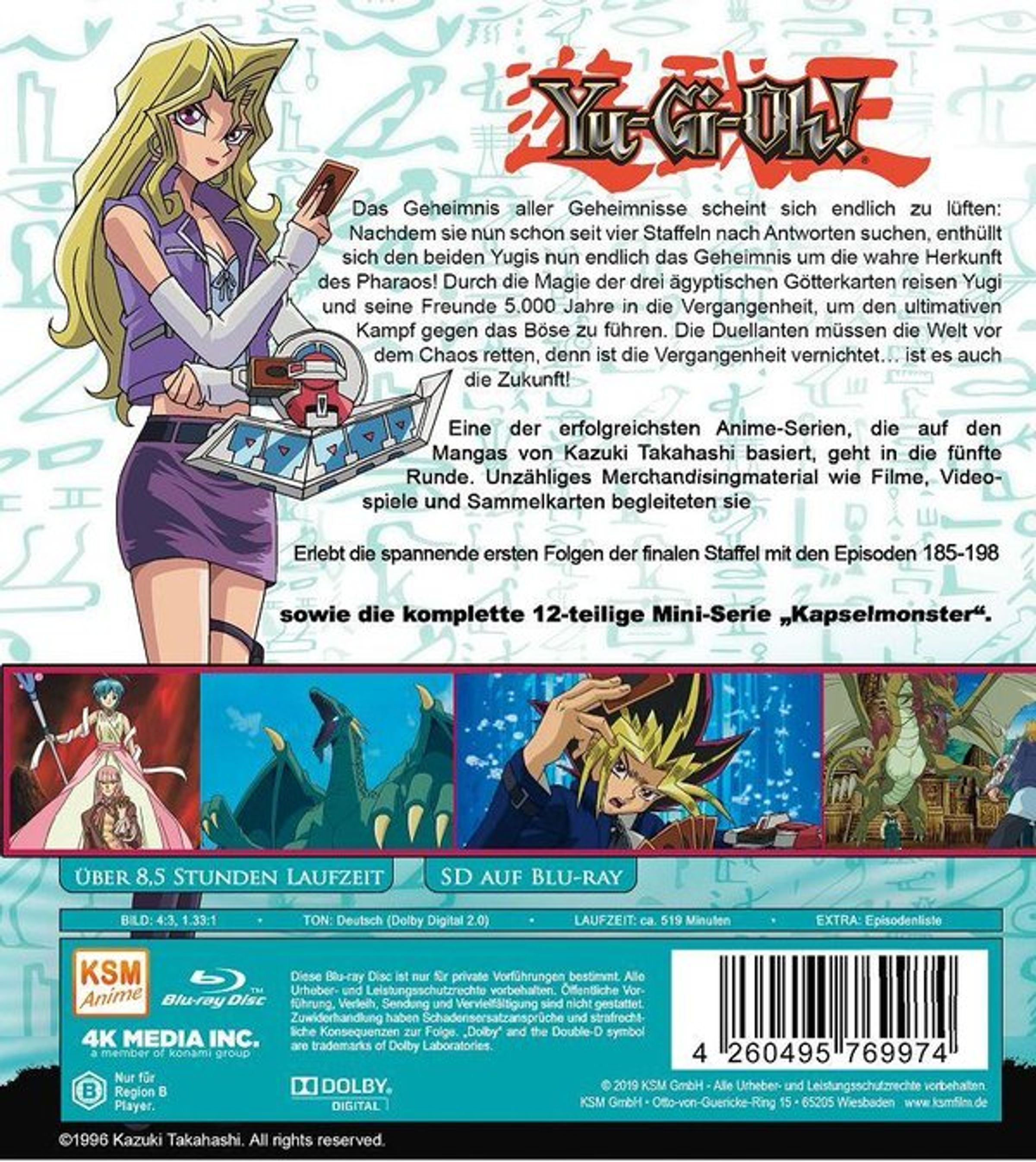 Nachdem sie nun schon seit vier Staffeln nach Antworten suchen, enthüllt sich den beiden Yugis nun endlich das Geheimnis um die wahre Herkunft des Pharaohs! Durch die Magie der drei ägyptischen Götterkarten reisen Yugi und seine Freunde 5.000 Jahre in die Vergangenheit, um den ultimativen Kampf gegen das Böse zu führen. Die Duellanten müssen die Welt vor dem Chaos retten, denn ist die Vergangenheit vernichtet… ist es auch die Zukunft!