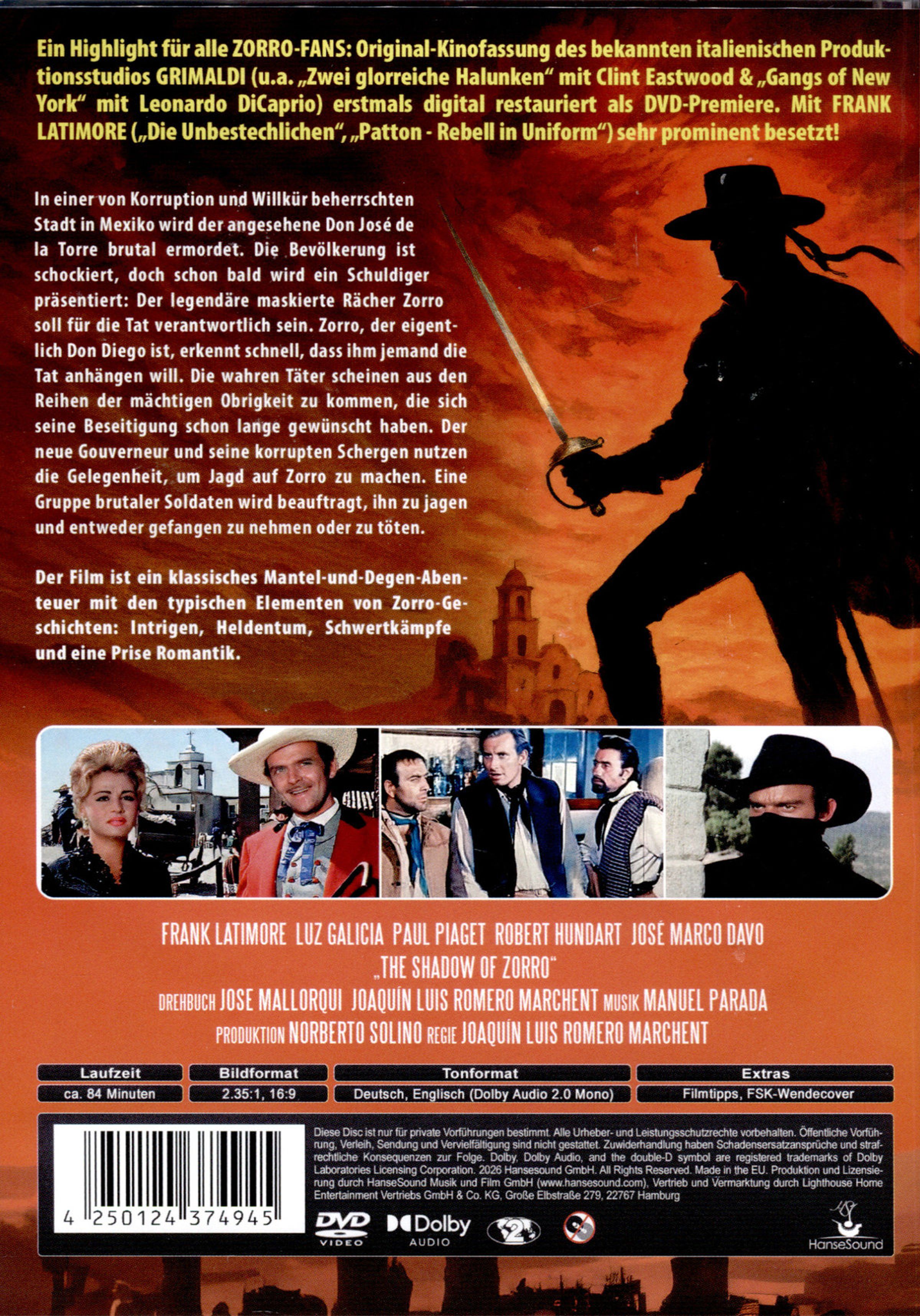 In einer von Korruption und Willkür beherrschten Stadt in Mexiko wird der angesehene Don José de la Torre brutal ermordet. Die Bevölkerung ist schockiert, doch schon bald wird ein Schuldiger präsentiert: Der legendäre maskierte Rächer Zorro soll für die Tat verantwortlich sein ...