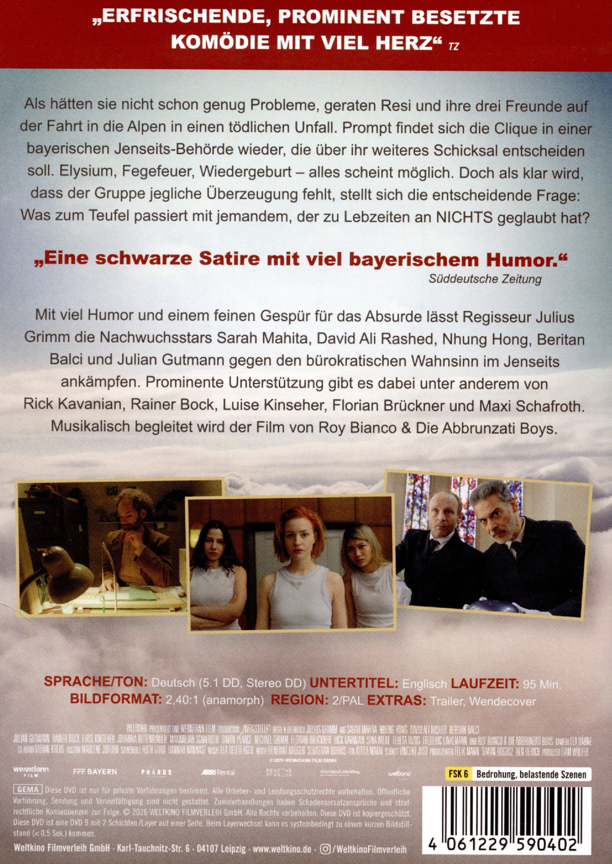 Als hätten sie nicht schon genug Probleme, geraten Resi und ihre drei Freunde auf der Fahrt in die Alpen in einen tödlichen Unfall. Prompt findet sich die Clique in einer bayerischen Jenseits-Behörde wieder, die über ihr weiteres Schicksal entscheiden soll. Elysium, Fegefeuer, Wiedergeburt - alles scheint möglich. Doch als klar wird, dass der Gruppe jegliche Überzeugung fehlt, stellt sich die entscheidende Frage: Was zum Teufel passiert mit jemandem, der zu Lebzeiten an NICHTS geglaubt hat?