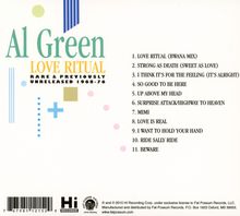 Der Titel „Love Ritual“ könnte irreführen: statt geradliniger Love-Songs (für die Al Green selbstredend auch berühmt ist), finden sich auf dieser Compilation handverlesene Stücke, die in Zusammenarbeit mit dem Produzenten Willie Mitchell entstanden und welche für ihre experimentellen Arrangements geschätzt werden.