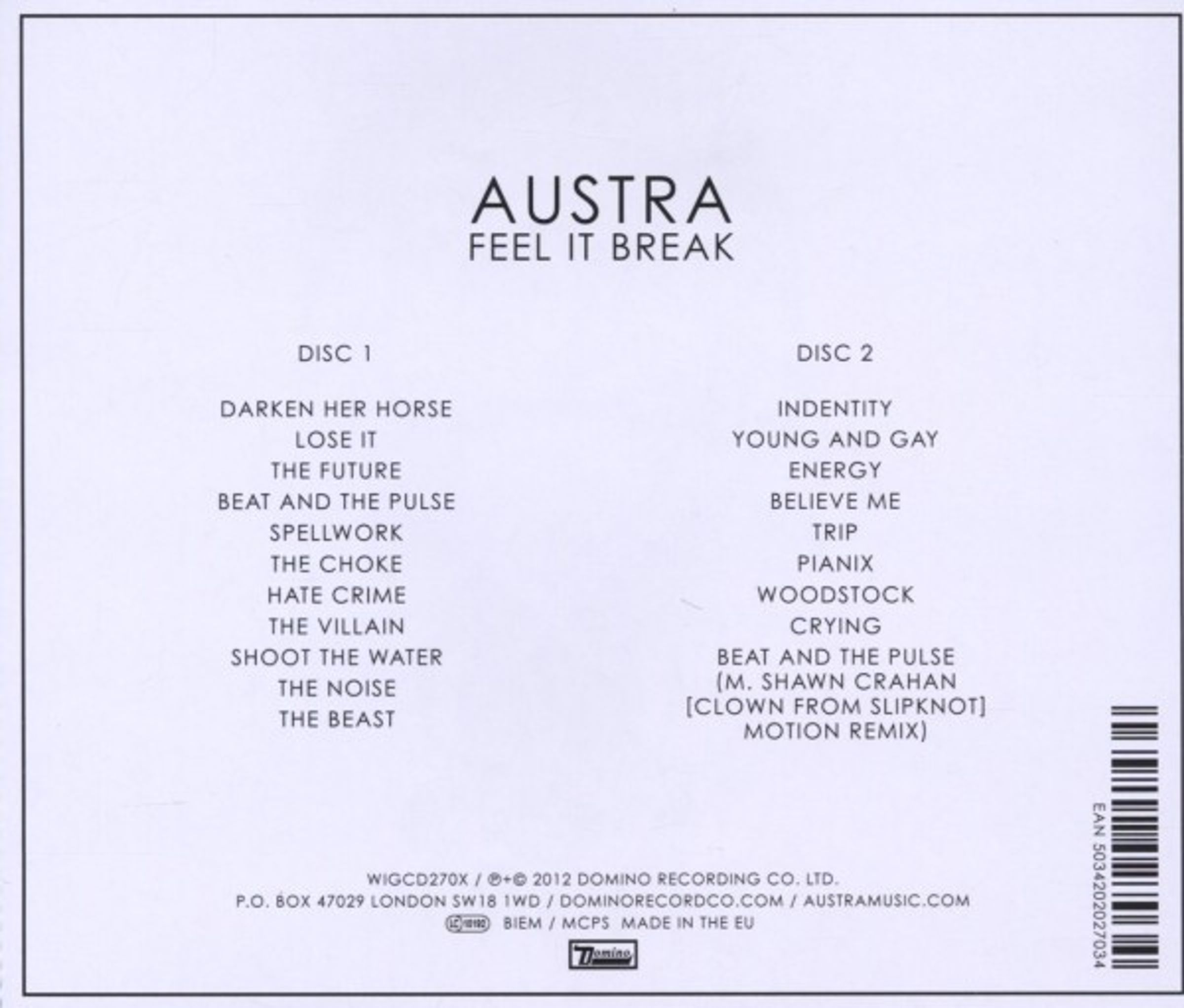 2011 was a landmark year for Austra, which saw the Toronto six-piece release their critically acclaimed debut album Feel It Break and tear up clubs from around the world many times over. To put an exclamation point on the year the band is giving Feel It Break the deluxe version treatment. To accompany the original danceable masterpiece is an entire disc's worth of extra material including the unreleased b-sides "Trip", "Pianix", "Believe Me" and a jaw dropping cover of the Roy Orbison classic "Crying".