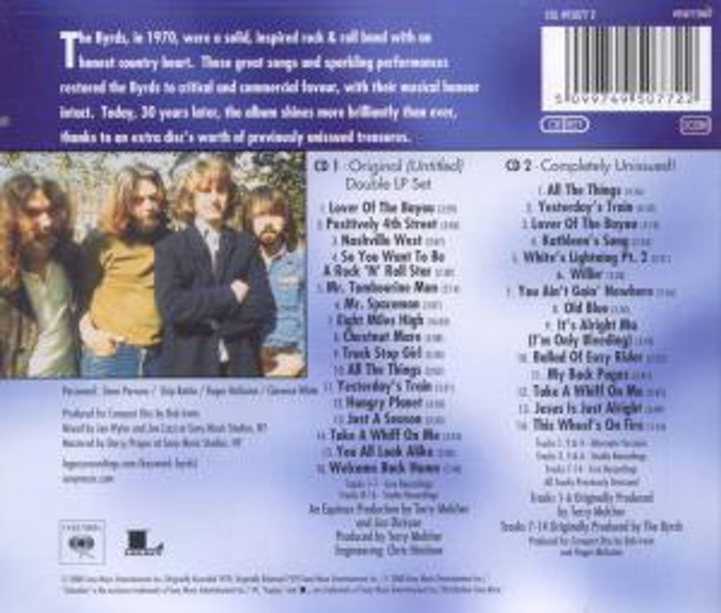 F. Schöler in Stereo 5/00: "Das Studio- und Live-Material, das die Plattenfirma Jahrzehnte im Archiv gehortet hatte und jetzt erstmals auf der "Unissued"-CD des Doppelsets veröffentlicht, entpuppt sich als teilweise noch fabel- hafter als das der offiziellen Vinylversion zuvor. Stoff von jener Qualität, der die Byrds zur Rockmusik-Legende machte."Disk 1 von 2 (CD)