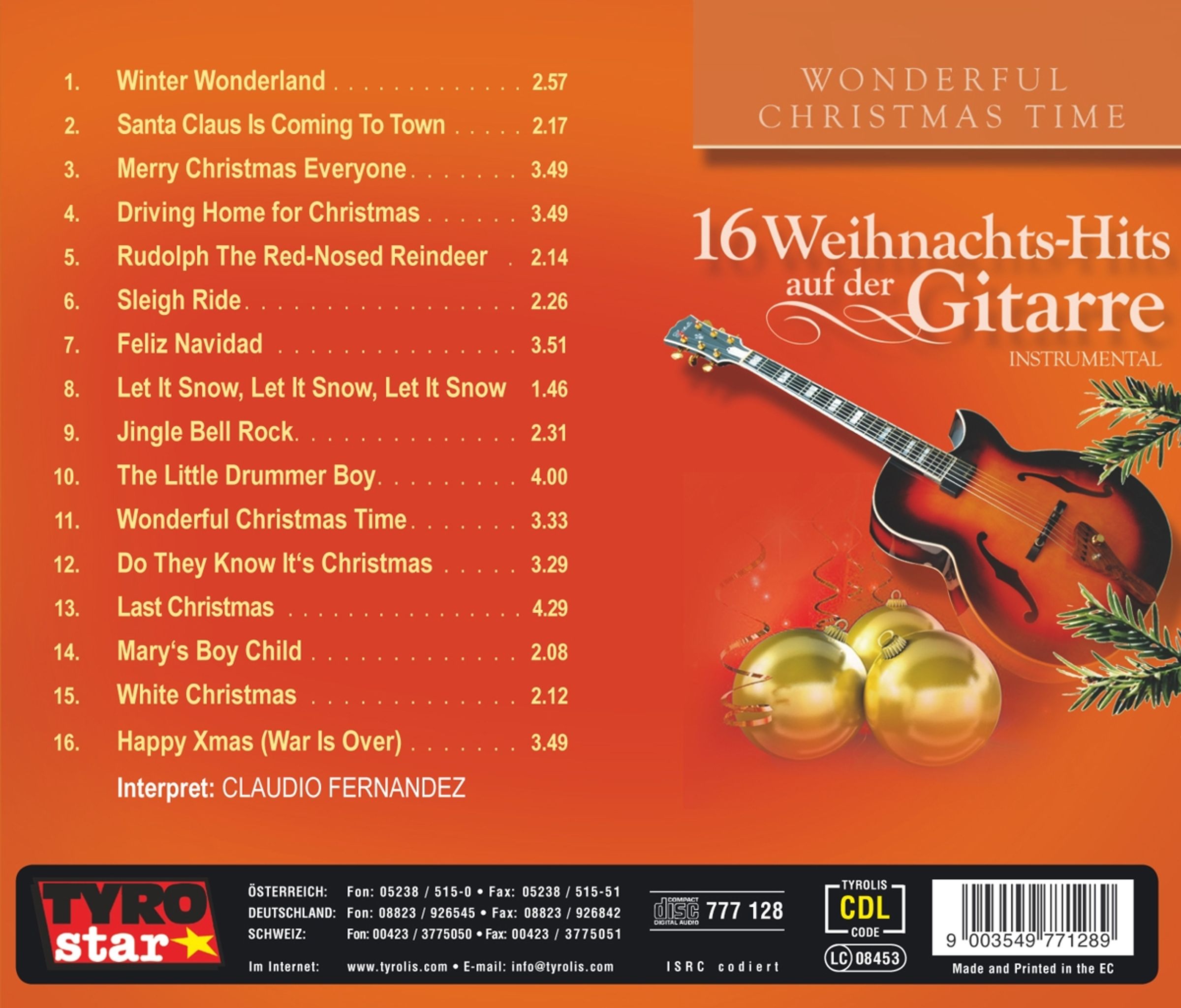 Claudio Fernandez: 16 Weihnachtshits auf der Gitarre auf CD