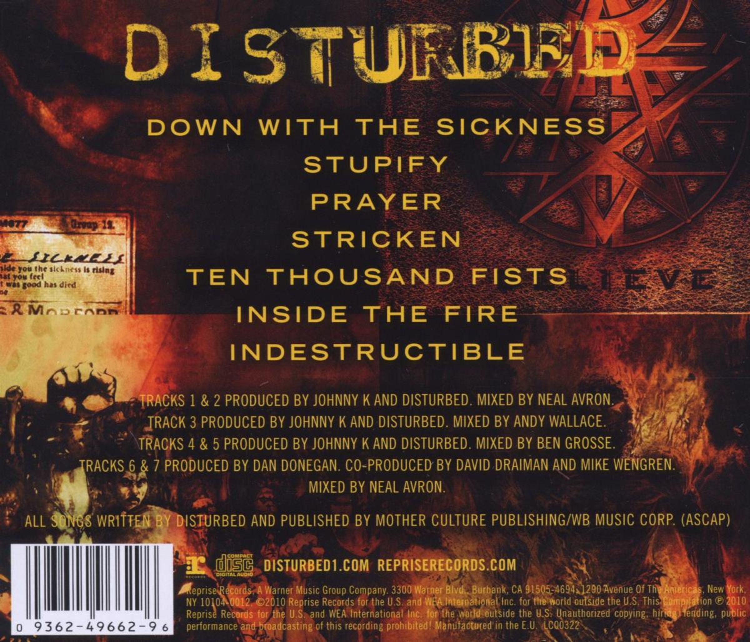 Im März 2010 feiern DISTURBED das zehnjährige Jubiläum der Veröffentlichung ihres sensationellen, mehrfach mit Platin ausgezeichneten Debüts The Sickness mit einer Special-Edition, die exklusive B-Seiten und ein stark erweitertes Artwork enthält. Ebenfalls im März findet der Relaunch ihrer offiziellen Website www. disturbed1.com statt, die eine zusätzliche Sektion enthält, welche nur mit einem Code zugänglich sein wird, der beim Erwerb der Anniversary-Edition mitgeliefert wird. Die neue Sektion wird wöchentlich aktualisierte, exklusive Clips zur Entstehung ihres kommenden Albums enthalten, das noch in diesem Jahr bei Reprise erscheinen wird. Es wird überdies einen speziellen DOD-Bereich geben, der für jeden zugänglich sein wird. Mit überragenden Hit-Singles wie Stupify, Voices und Down With The Sickness ist The Sickness bis heute das meistverkaufte Album DISTURBEDs, wobei Down With The Sickness laut Nielsen Soundscan im Ranking der Download-Zahlen der neunziger Jahre an siebter Stelle steht! 1996 in Chicago gegründet, haben DISTURBED bis heute weltweit mehr als 11 Millionen Alben und sechs Millionen digitale Tracks abgesetzt. Acht ihrer Songs erreichten die Top-Position in den Active Rock Radio-Charts. Ihr jüngstes Album Indestructible katapultierte sich von 0 auf 1 in die Billboard-200-Charts und hielt sich fünf Wochen lang in den Top-10. Indestructible war nach dem Platin-Album Believe (2002) und Ten Thousand Fists (2005) das dritte DISTURBED-Nummer 1-Album in Folge. Damit wurden DISTURBED zu einer der nur sechs Rock-Bands in der Geschichte der Charts, die dreimal hintereinander die Top-Position erreichte. Und als Schmankerl für alle Neueinsteiger ins Disturbed-Universum wird zudem Ende März die Compilation “DISTURBED“ mit den sieben größten Hits der Band erhältlich sein.