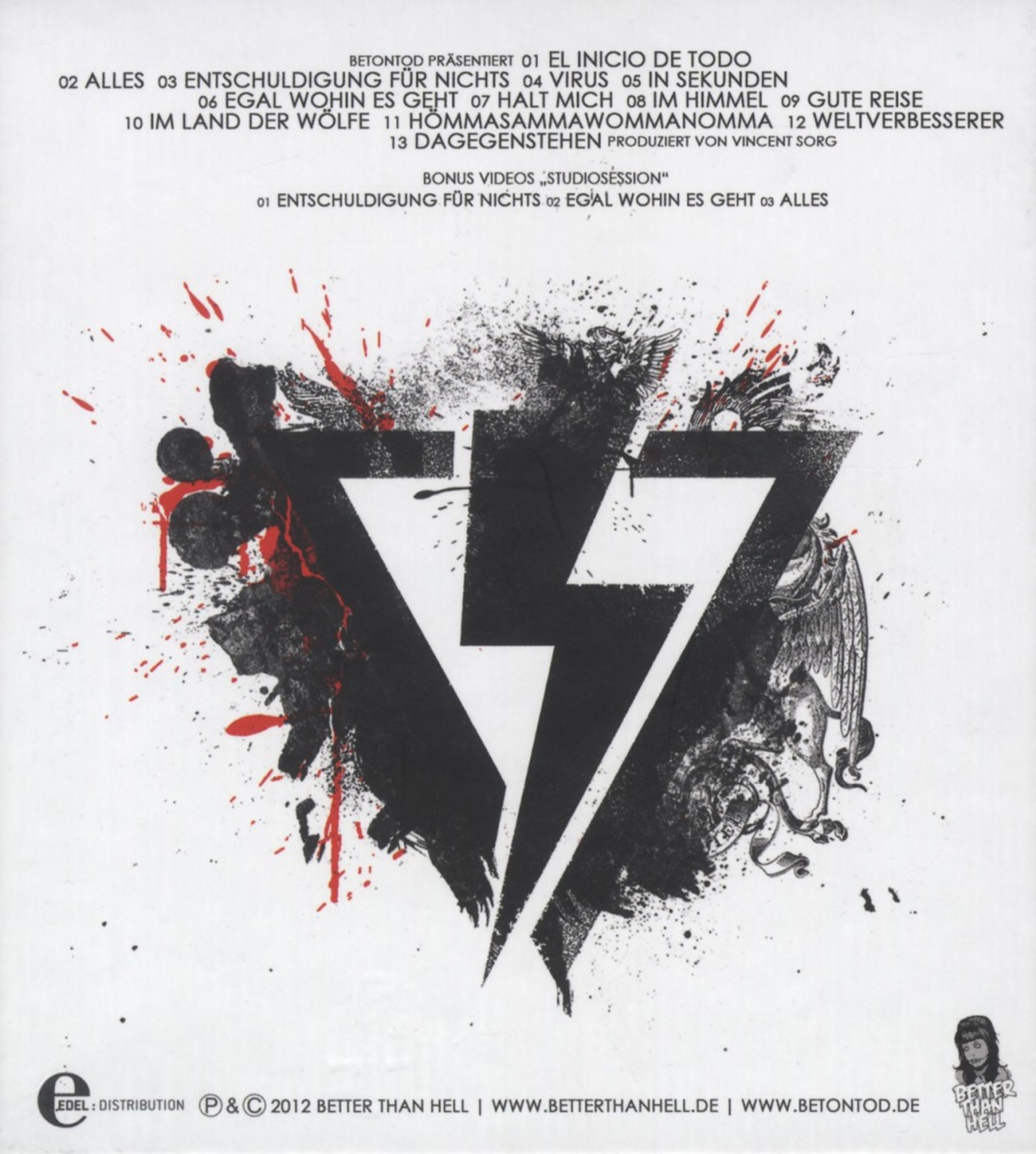 Das Sprichwort vom Herz, das man direkt auf der Zunge trägt, es beschreibt wohl kaum eine deutsche Rockband so treffend wie Betontod. Seit über 20 Jahren artikuliert die Gruppe um Gitarrist und Komponist Frank Vohwinkel ihre Lebensphilosophie in rassigen Songs, die man – im weitesten Sinne – als Punkrock bezeichnen kann und die thematisch wie stilistisch unmissverständlich auf den Punkt kommen. Im gleichen Maße wie die schneidigen Gitarrenriffs, die treibenden Schlagzeug-Grooves und geradlinigen Arrangements der Gruppe jeden Umweg vermeiden, hält sich auch Sänger Oliver Meister nicht lange mit nebulösen Formulierungen auf. Bei ihm sitzt jede Zeile, jeder Satz, jedes Statement: „Wie Eisen und Granit, so fest stehen wir zusammen, wie ein Funke und Benzin, der das Feuer neu entflammt“, singen Betontod in „Entschuldigung für nichts“, der ersten Single des gleichnamigen neuen Albums. Nach ihrem Durchbruch mit „Antirockstars“, das auf # 28 in die Charts einstieg, folgten zahlreiche ausverkaufte Headliner-Tourneen. Betontod erspielten sich mit fulminanten Konzerten und einer bewundernswerten Fannähe ein großes treues Publikum. In Szene gesetzt wurde das neue Meisterwerk von Vincent Sorg (Die Toten Hosen, Broilers, In Extremo).
