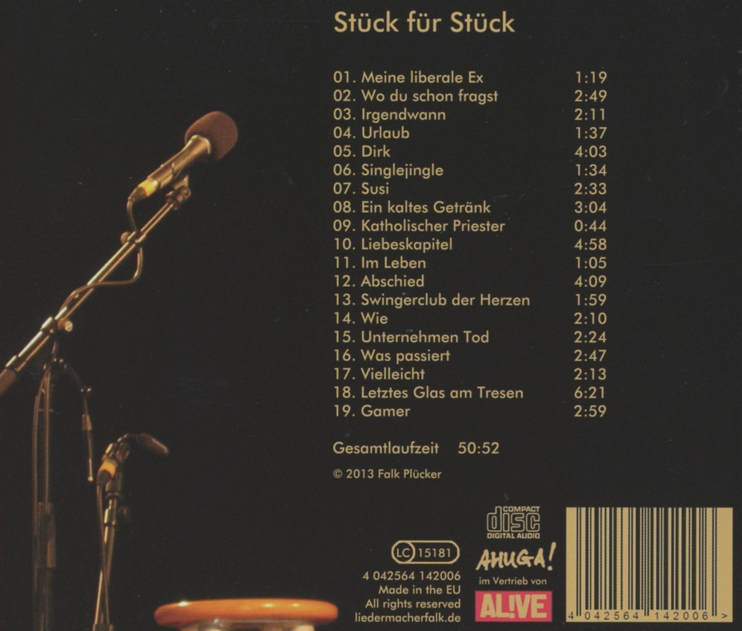 Falk Plückers Songs strahlen Ernst, Würde und Lebenserfahrung aus und verlieren dabei trotzdem nie ihren Humor und die ironische Distanz. Sein Themenspektrum bewegt sich von tiefgründigen Reflektionen über den Tod, das Abschiednehmen und die Einsamkeit bis zu herrlich albernen Unverschämtheiten gegenüber dem anderen Geschlecht.
