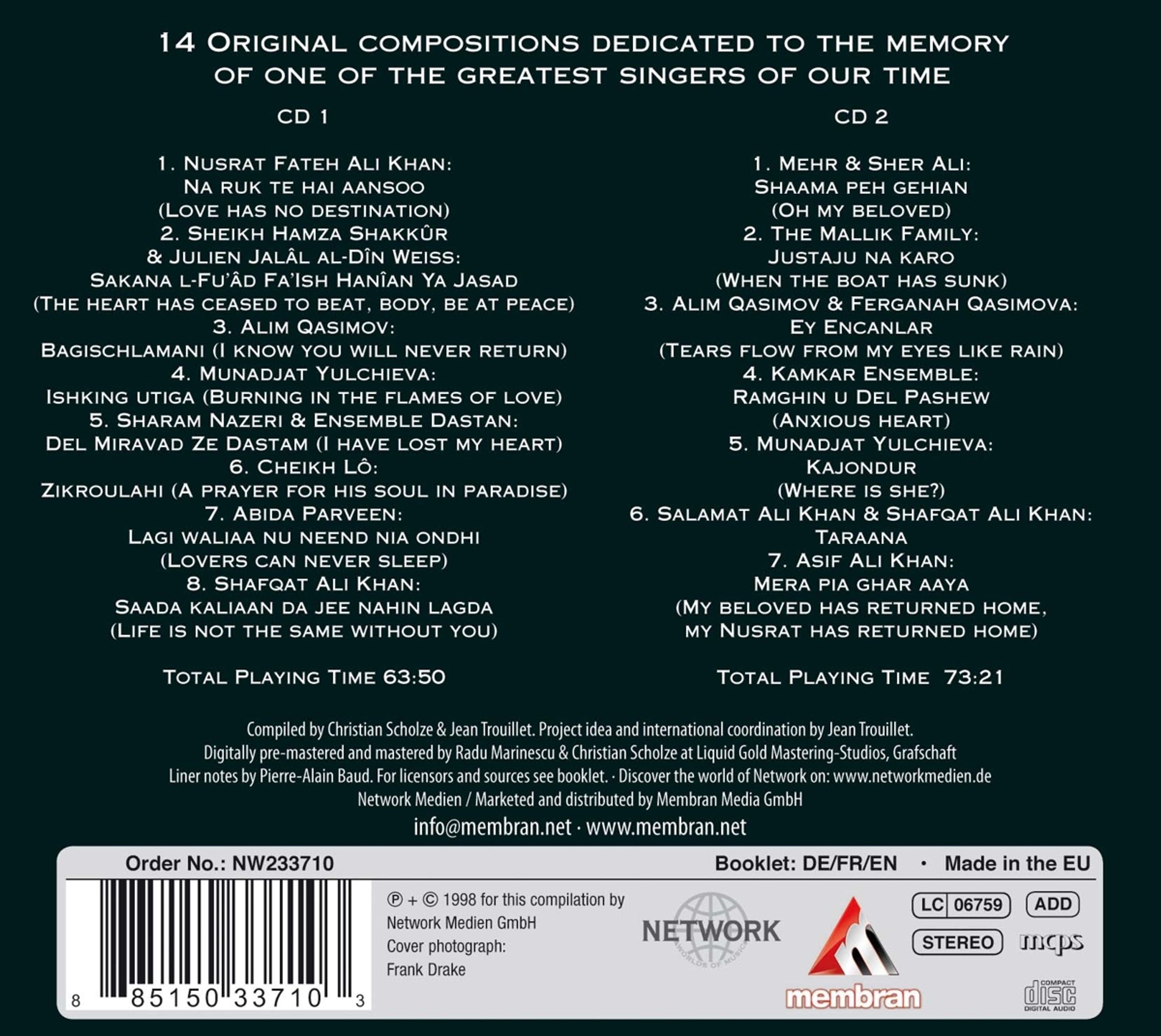 Eine letzte Verbeugung vor einem der größten Sänger unserer Zeit: In 14 Originalkompositionen bringen die größten Sufi-Sänger und ihre Ensembles auf höchstem Niveau ihre Zuneigung und ihren Respekt zum Ausdruck, dazu eine unveröffentlichte Aufnahme von Nusrat Fateh Ali Khan.