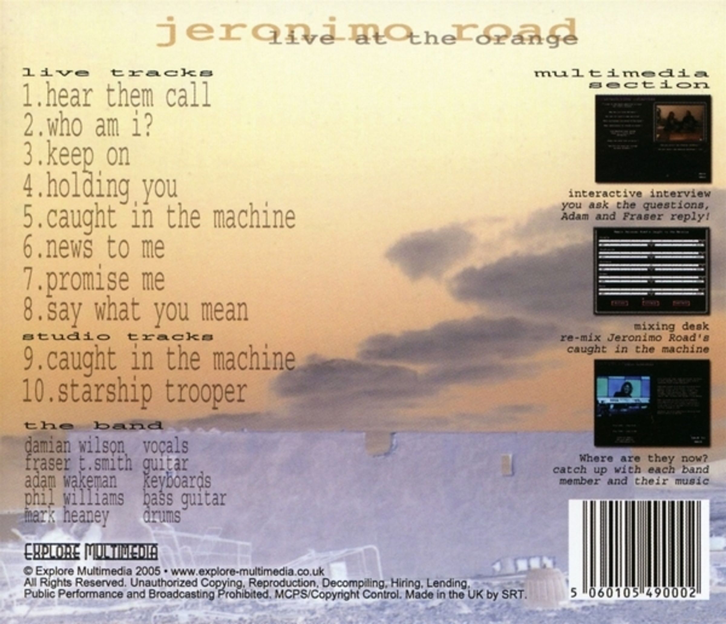 Mitte der 90er Jahre gründete Adam Wakeman die Band Jeronimo Road. Zur damaligen Bandbesetzung gehörten Adam Wakeman, Damian Wilson und Fraser Thorneycroft-Smith. 1996 erschien das Live-Album "Live At The Orange", das jetzt auf Cherry Red Records wiederveröffentlicht wird.