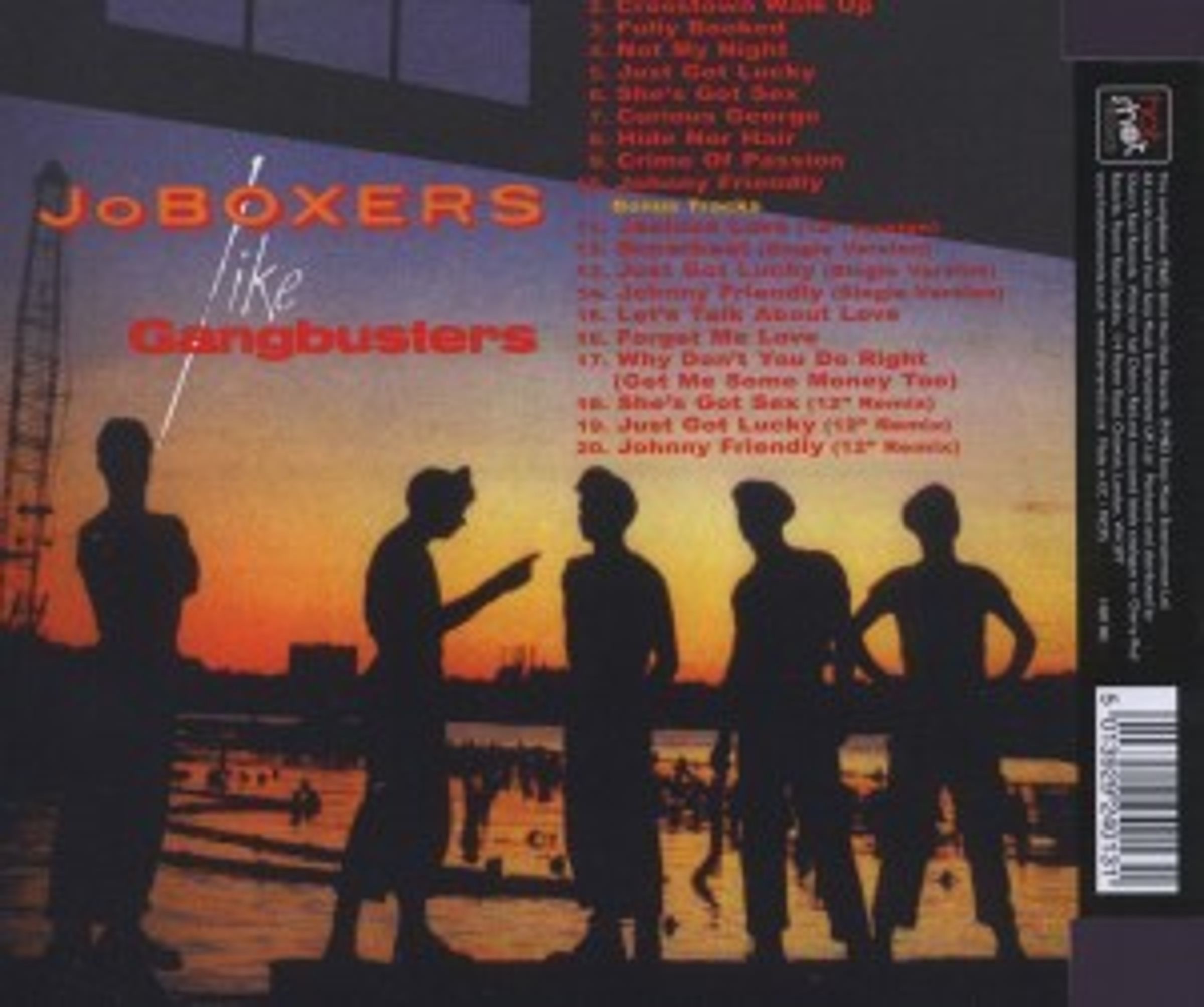 JOBOXERS' debut album LIKE GANGBUSTERS reached the US Pop charts and became a Top 20 hit in the UK in addition to producing a third consecutive UK Top 40 hit single in the form of JOHNNY FRIENDLY. A Further non album single JEALOUS LOVE gave the band their fourth hit of an amazing debut year. In addition to containing the now rare original 7" and 12" remixes, this 20 track expanded remaster also contains rare b-sides Let's Talk About Love, Why Don't You Do Right (Get Me Some Money Too) and Forget Me Love as well as the hit JEALOUS LOVE, of which the studio version makes it’s CD debut here.