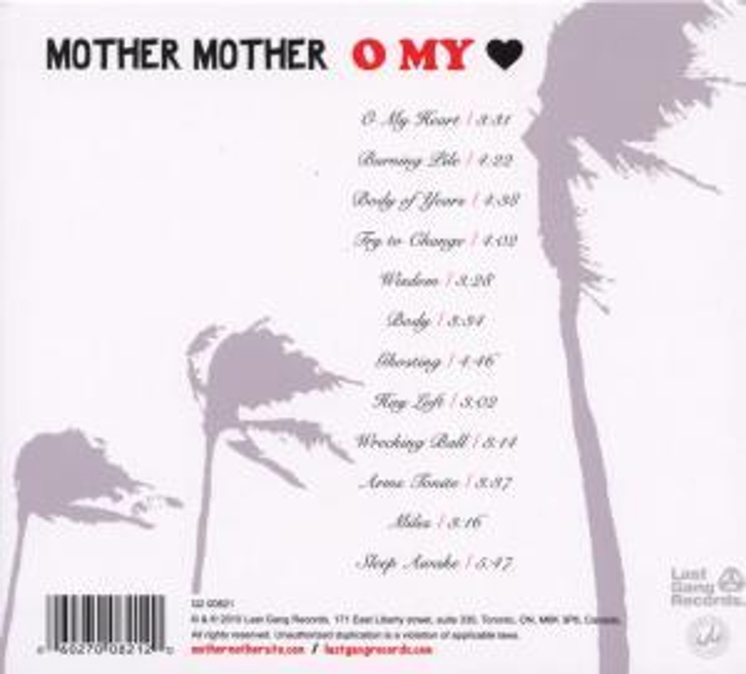 Last Gang Records beschert uns mit Mother Mother ein absolut grandioses Meisterwerk. Ohne Zweifel sind hier 12 Songs, die absolut clever komponiert, arrangiert sind und die jeden beim ersten Hören vom Hocker reißen werden: Eine unglaubliche Dynamik, überraschende Instrumentierung, perfekt eingesetzte Harmonie-Gesänge der 2 männlichen und 3 weiblichen Bandmitglieder und ein umwerfendes Songwriting mit extremen Gespür für Timing und Melodie. Mit ganz viel Herz und Euphorie trägt die band ihre Song-Perlen vor, auf dem Album aber auch als Live Band. Der Start in Deutschland ist schon vielversprechend, von Mother Mother werden wir noch viel hören. “One of the most exciting bands coming out of Canada.“ - Perez Hilton.