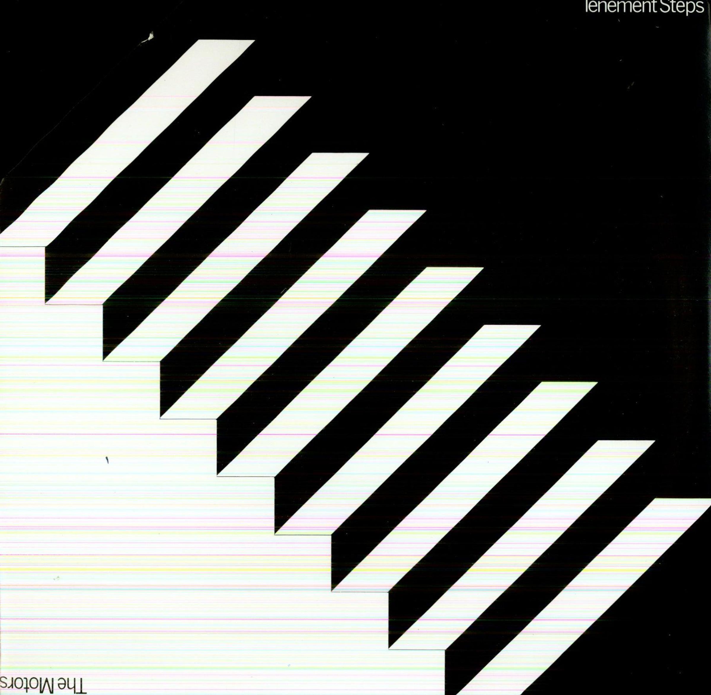 "Tenement Steps" oben, "The Motors" unten. Darstellung einer Treppe aus schwarzen und weißen Streifen., LP