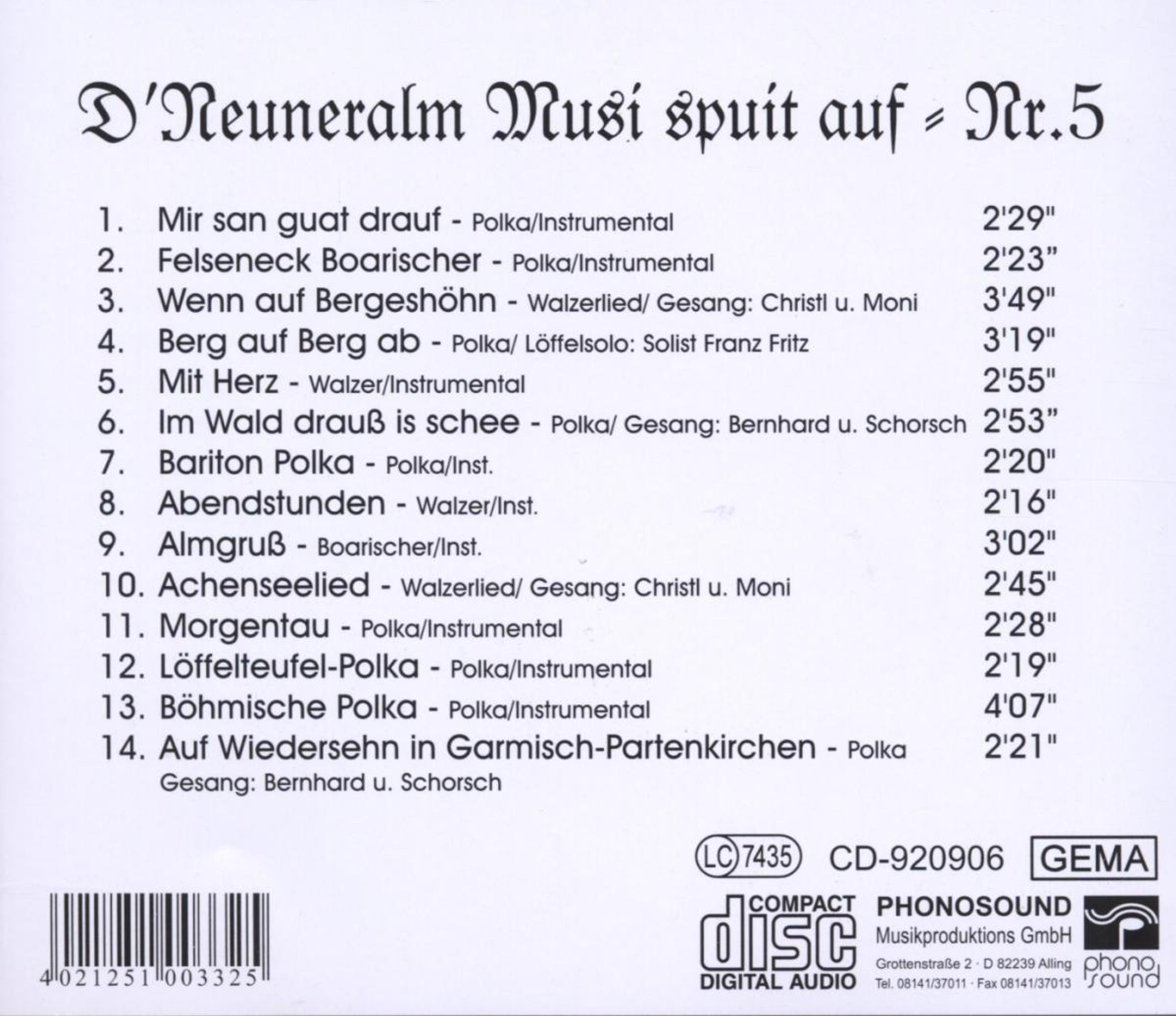 D'Neuneralm Musi: Spuit auf Nr. 5 auf CD