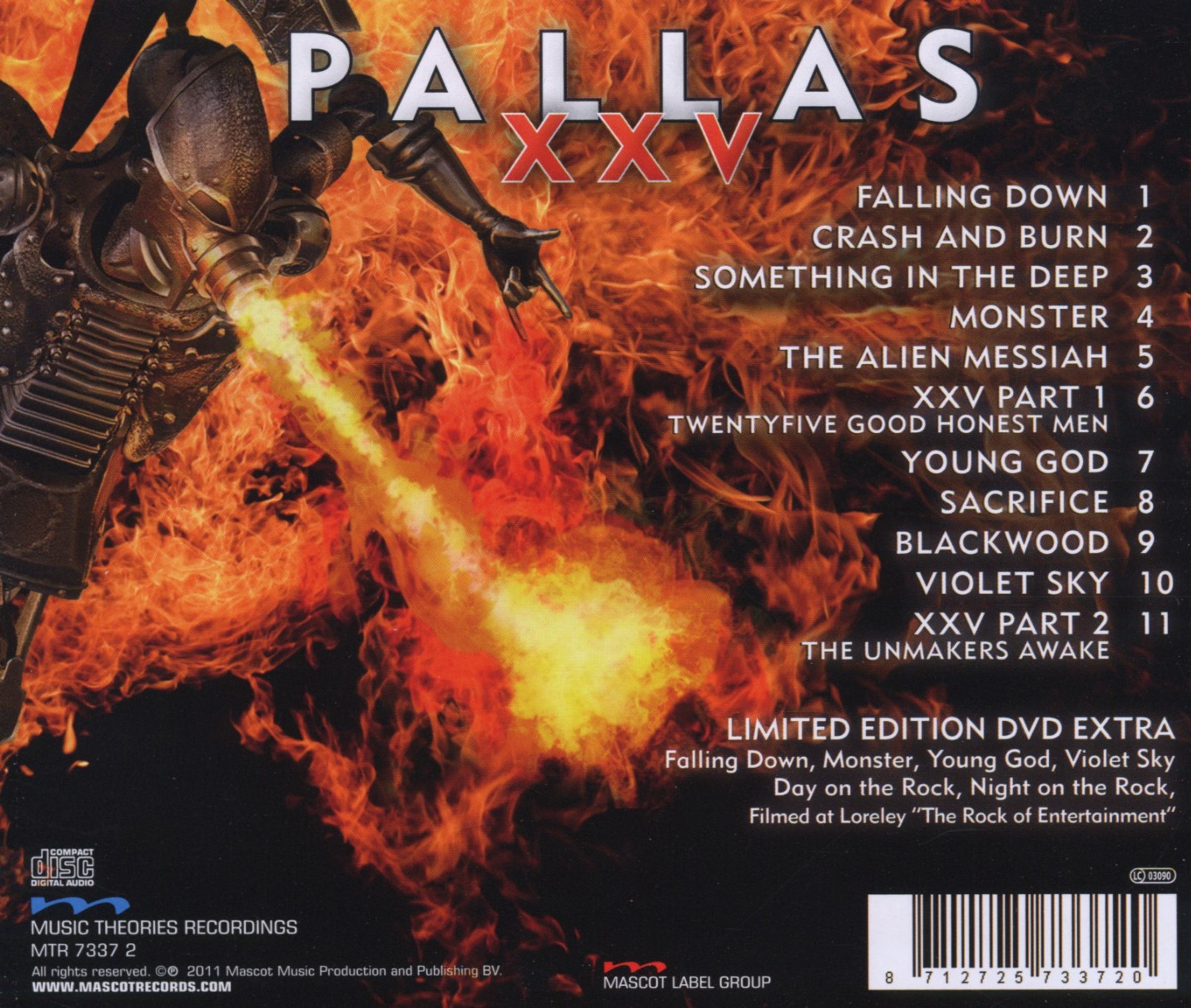 5 Jahre nach ihrem letzten Studiowerk kehren PALLAS mit dem zweiten Teil ihres Progressive Rock Klassikers zurück. Mit dem 25-jährigen Jubiläum im Rücken, unterschrieben die Schotten einen neuen Plattenvertrag bei der Mascot Label Group und feierten dies mit einem grandiosen Auftritt im September auf der berühmten Freilichtbühne Loreley in St. Goarshausen bei Koblenz. Fans und Pressevertreter waren begeistert vom neuen Material und fiebern nun der Veröffentlichung von XXV entgegen. Für 2011 stehen weitere Konzerte an. Für den 15. April 2011 ist die Band bereits als Headliner für das niederländische Progressive Rock Festival in Den Haag bestätigt.