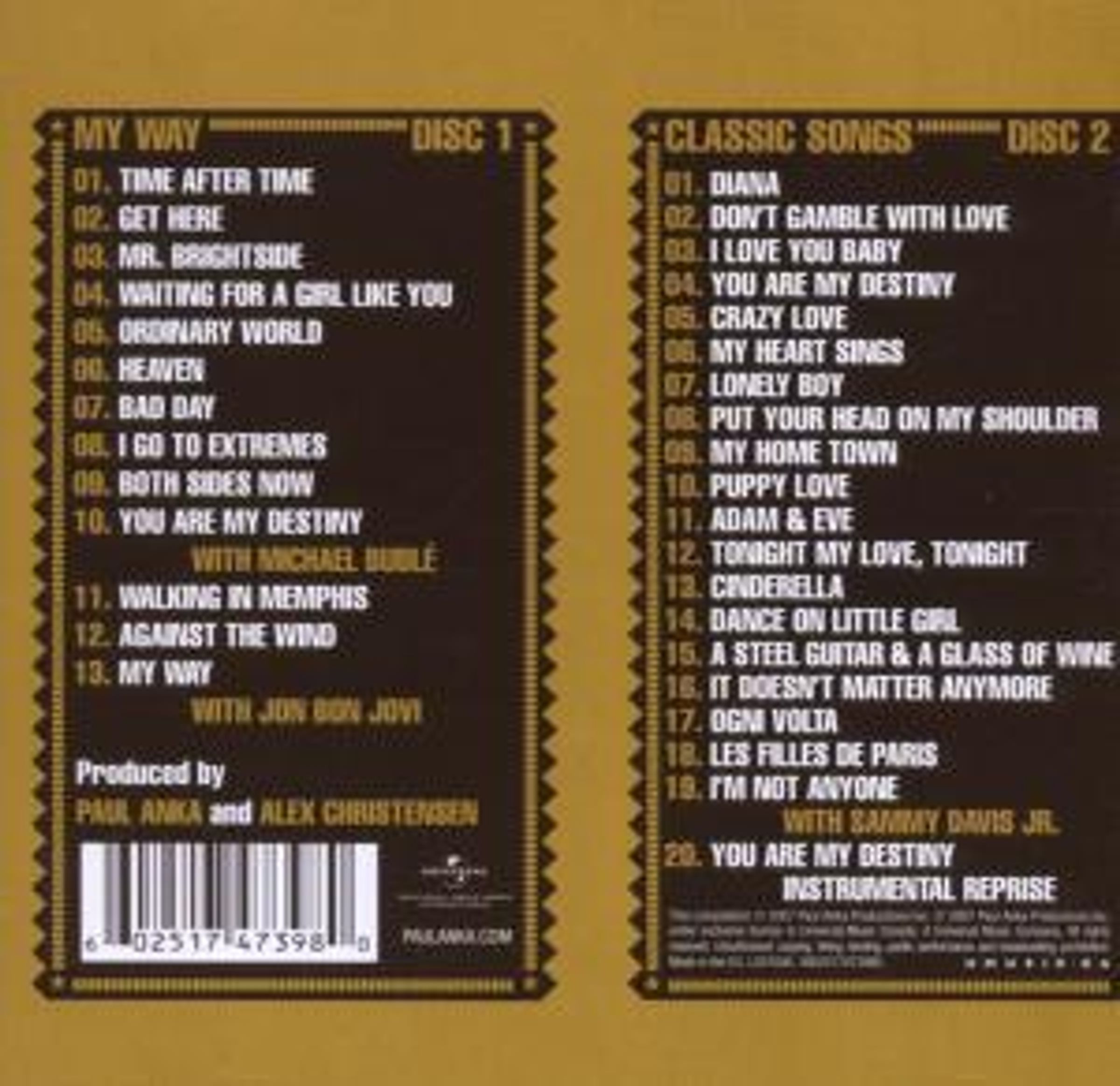 Michael Bublé, dem Anka wichtige Starthilfe gab, erweist seinem Swing-Mentor einen Gefallen, wenn er bei der Neuauflage von »You Are My Destiny«, ein Top-10-Hit aus dem Jahr 1958, auch zum Mikrofon greift. Für das große Finale des kommenden Albums steht Anka schließlich Jon Bon Jovi zur Seite, um mit ihm das Update zu »My Way« zu liefern, jenem Klassiker, den Paul bekanntermaßen an ein französisches Original anlehnte, um daraus den Dauerbrenner zu kreieren, mit dem sein verstorbener Freund Frank Sinatra Popgeschichte schreiben sollte.