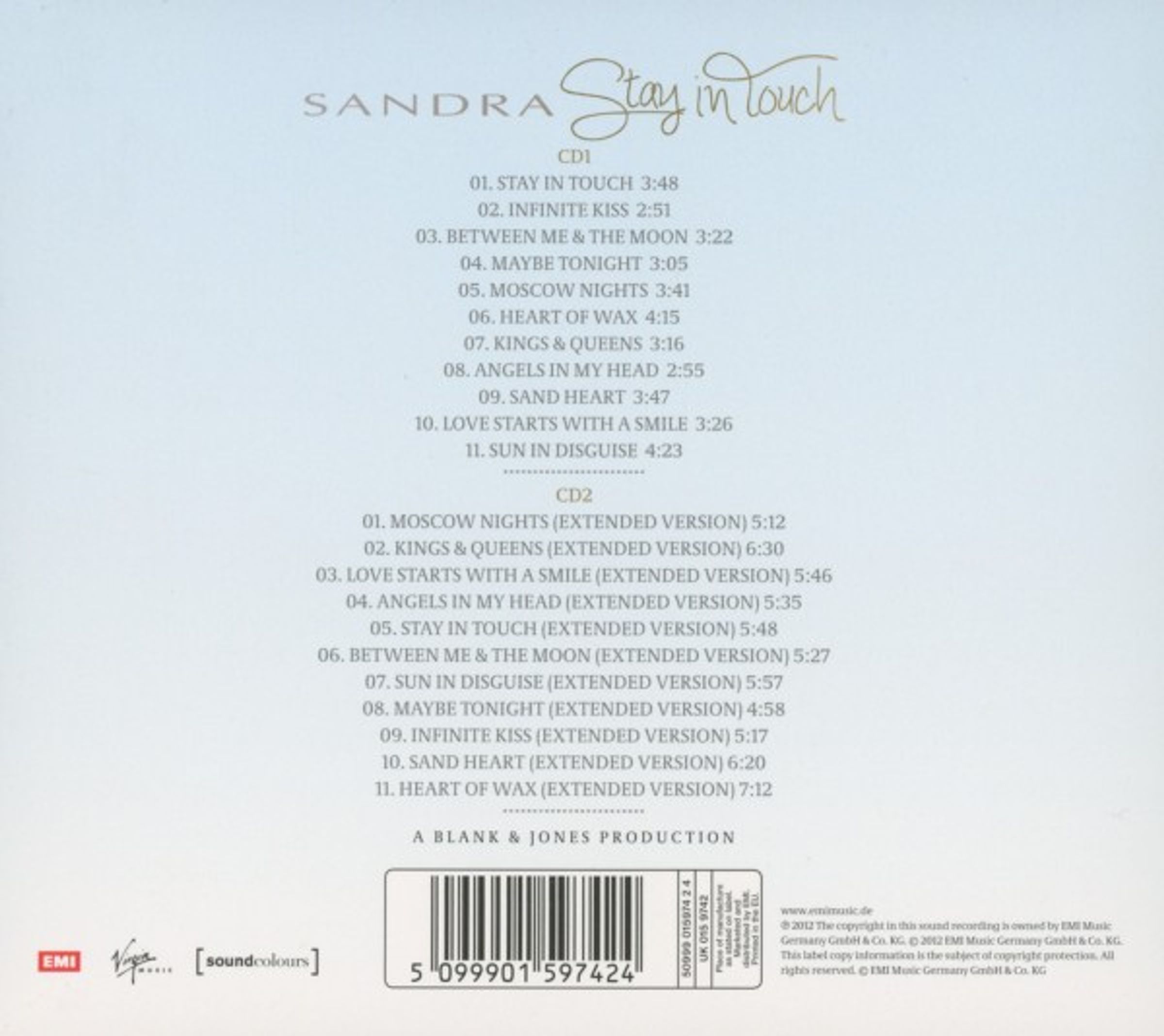 Bei EMI erscheint ihr neues Album „Stay In Touch“. Produziert wurde es von Blank & Jones, die auch für das A&R dieses Konzeptalbums verantwortlich sind. Das Songwriting wurde von Jens Gad und Hubert Kah übernommen. Hubert Kah ist erstmals seit den gemeinsamen Erfolgen in den 80er Jahren bei allen Songs für die Backing, Additional Vocals sowie für einige Kompositionen verantwortlich. Das gesamte Konzept des Albums wurde im Laufe der letzten 2 Jahre von Blank & Jones entwickelt und besinnt sich bewusst auf Sandras musikalische Wurzeln Mitte der 80er Jahre.