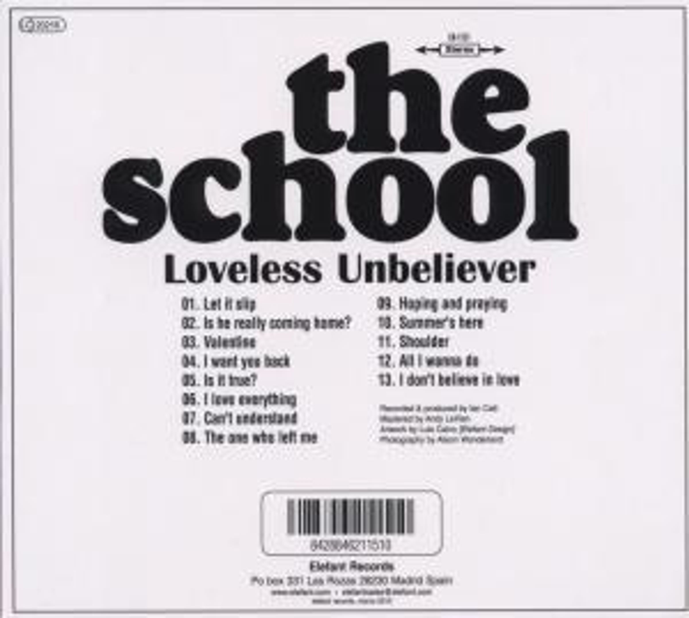 “Loveless Unbeliever” seems to be the story of a love that fades away: we would almost confirm that conceptually, it moves through unease, melancholy, the disappointment of that impossible love, but at the same time it knows that it will mark us for life; it’s a compilation of those moments that, behind the sadness, hide a tremendous beauty, because those are the moments that give us the true feeling of being alive. And that lust for life, the energy that pushes each and every of those instants is the vitality that THE SCHOOL’s songs openly show us, with their hummable choruses, their doo-doo-wops and their catchy arrangements.