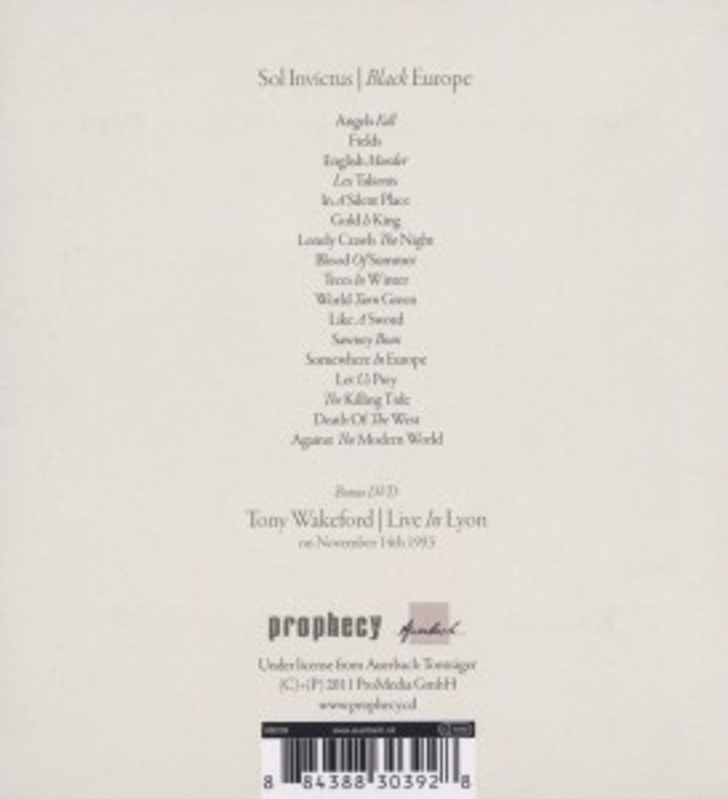 Invictus-Wiederveröffentlichungen die Liveaufnahme ‘Black Europe‘ in der bekannten überarbeiteten Form: als Portraitformatiges Digipak mit neuem Artwork und Linernotes von Tony Wakeford.