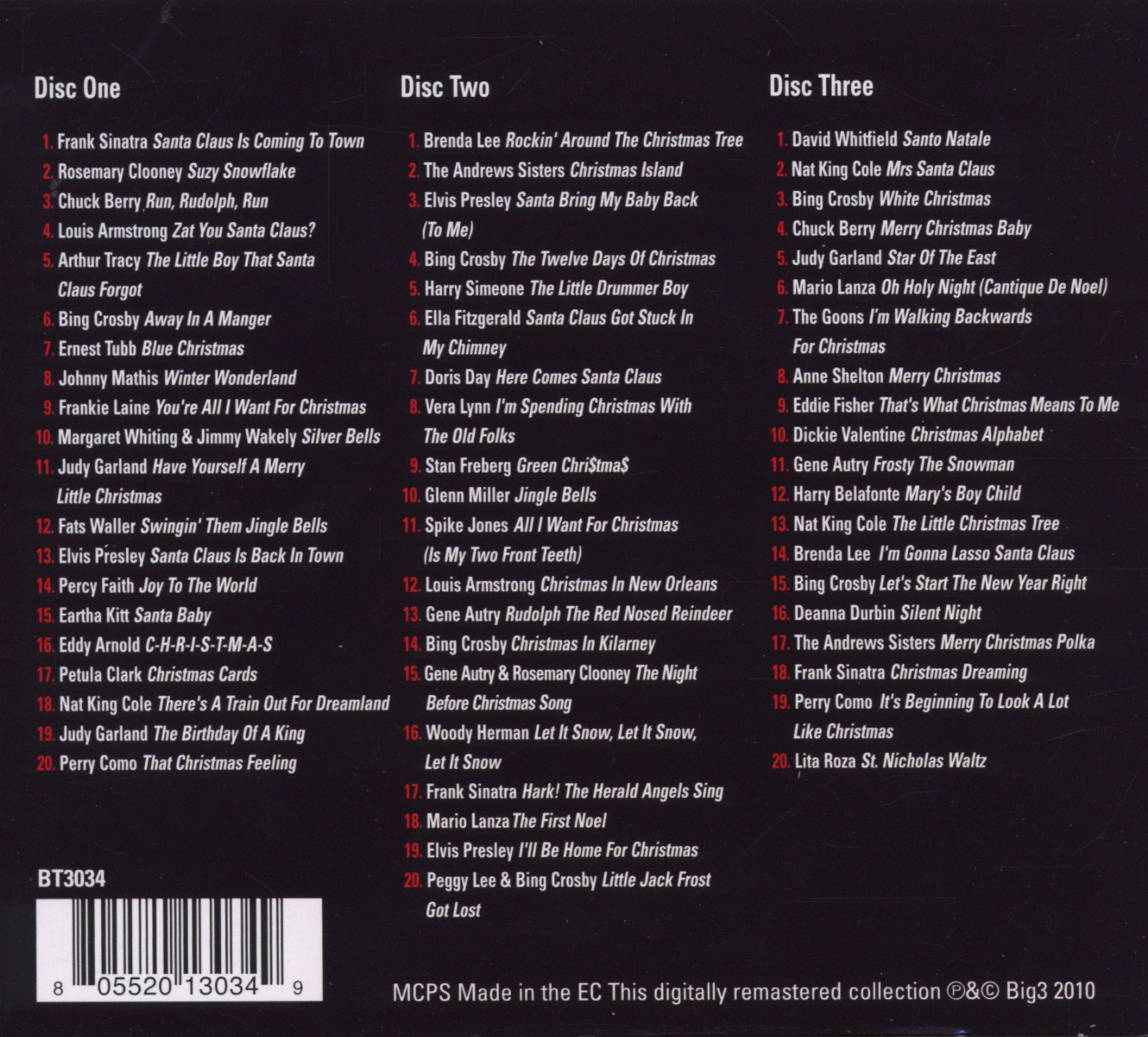 60 Weihnachts-Songs gesungen von vielen Weltstars, feat. Frank Sinantra, Elvis Presley, Ella Fitzgerald, Louis Amstrong, Chuck Berry, Doris Day, Bing Crosby u. a.