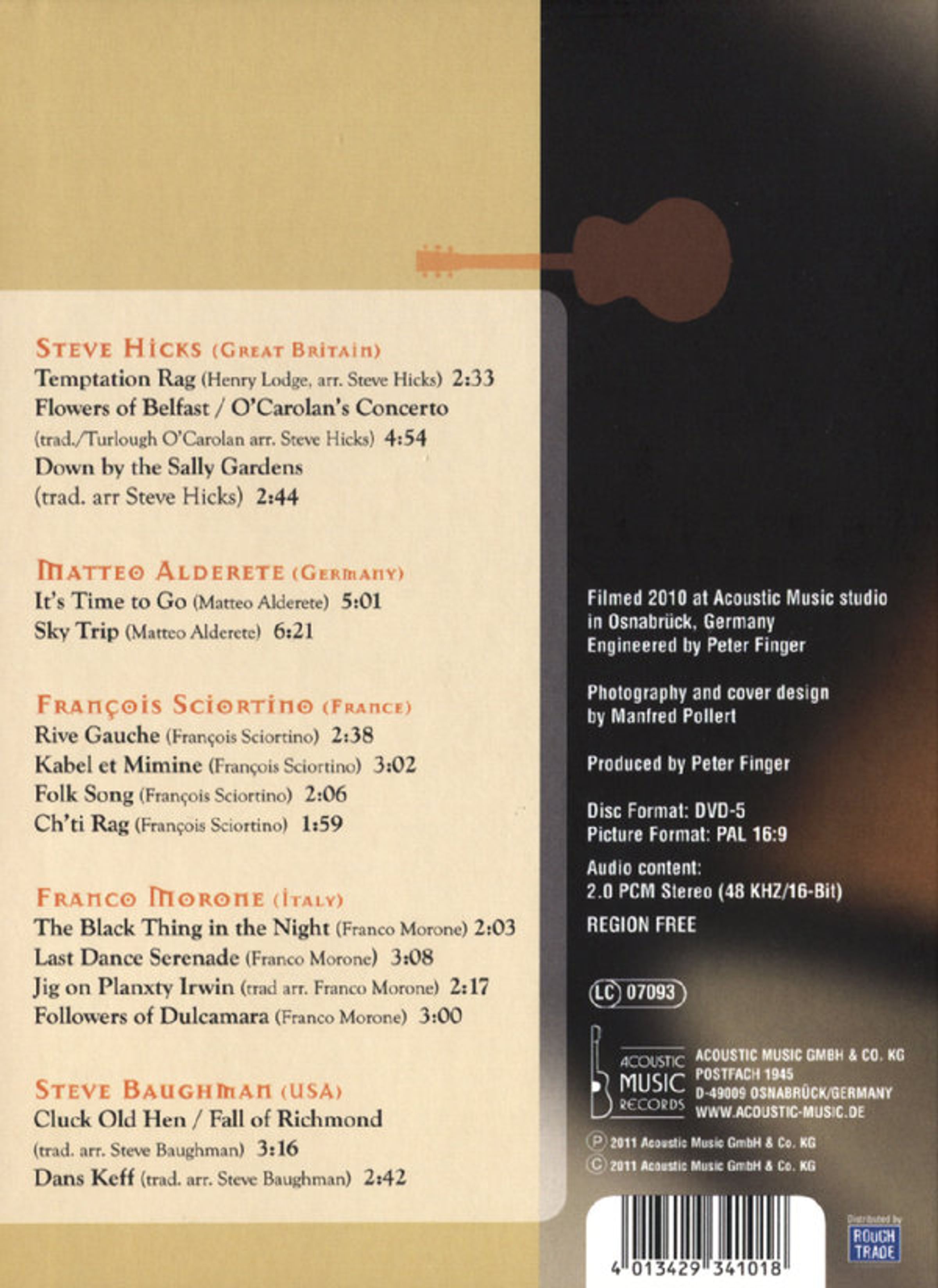 Erleben Sie einige der besten Fingerstyle-Gitarristen auf DVD. Mit unserer neuen Reihe bieten wir lhnen einen Seh- und Hörgenuss der Extraklasse. Die Aufnahmen in perfekter Bild- und Tonqualität und aus verschiedenen Kameraperspektiven mit gelungenen Close-ups präsentieren jeweils fünf Musiker so unmittelbar, wie man sie auf einem Live-Konzert wohl nur selten zu sehen bekommt. Ganz gleich ob Sie einfach nur hervorragende Musik genießen möchten oder den Meistern immer wieder genau auf die Finger schauen wollen - hier sitzen Sie garantiert in der ersten Reihe.