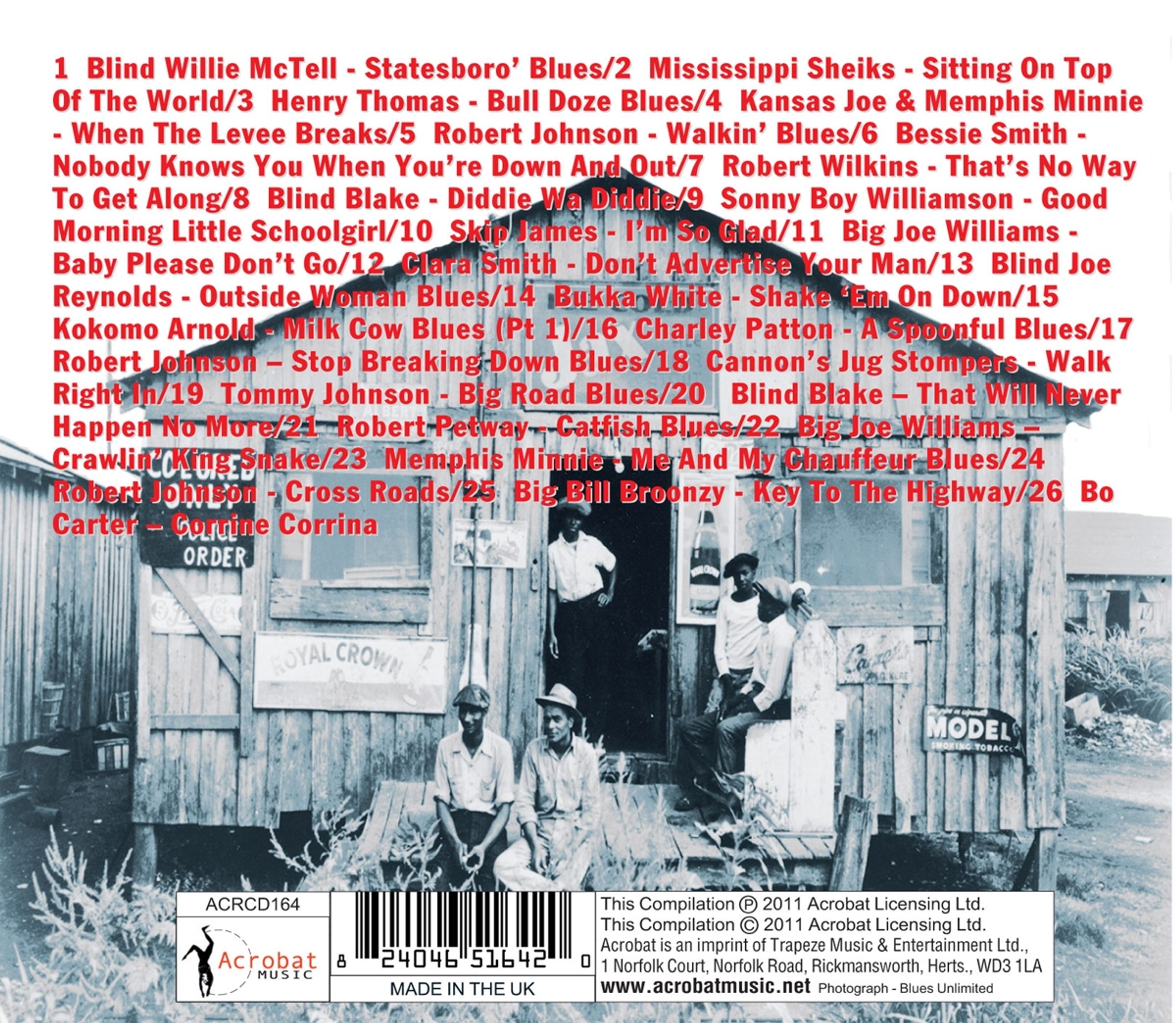 The pre-war blues provided much of the fuel for the 60?s Blues booms and the subsequent development of rock. Here are 25 examples of the original versions of songs made famous in the rock era by Elvis Presley/ Cream/ Led Zeppelin/ Them/ The Yardbirds/ B. B. King and The Rolling Stones. A bargain primer for the roots of rock.