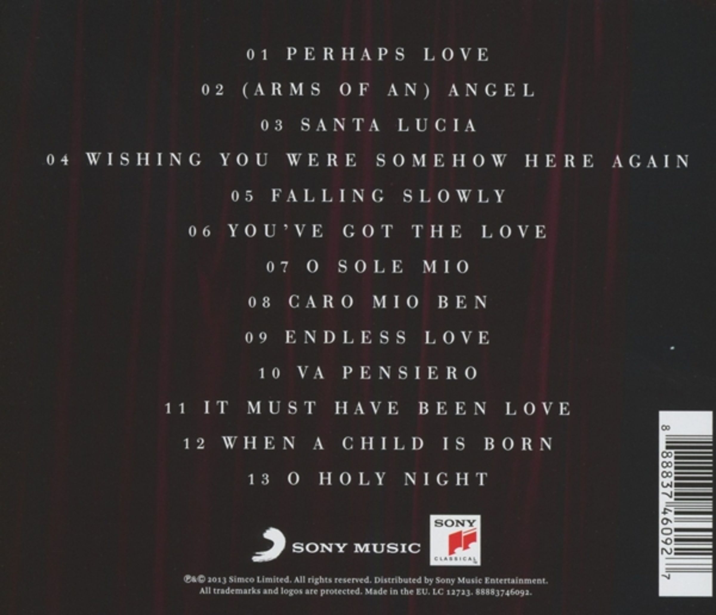 Auf Perhaps Love singen Jonathan und Charlotte Titel wie Endless Love (ursprünglich ein Duett von Diana Ross und Lionel Richie), It Must Have Been Love von Roxette, O sole mio oder In the Arms of an Angel von Sarah McLachlan.