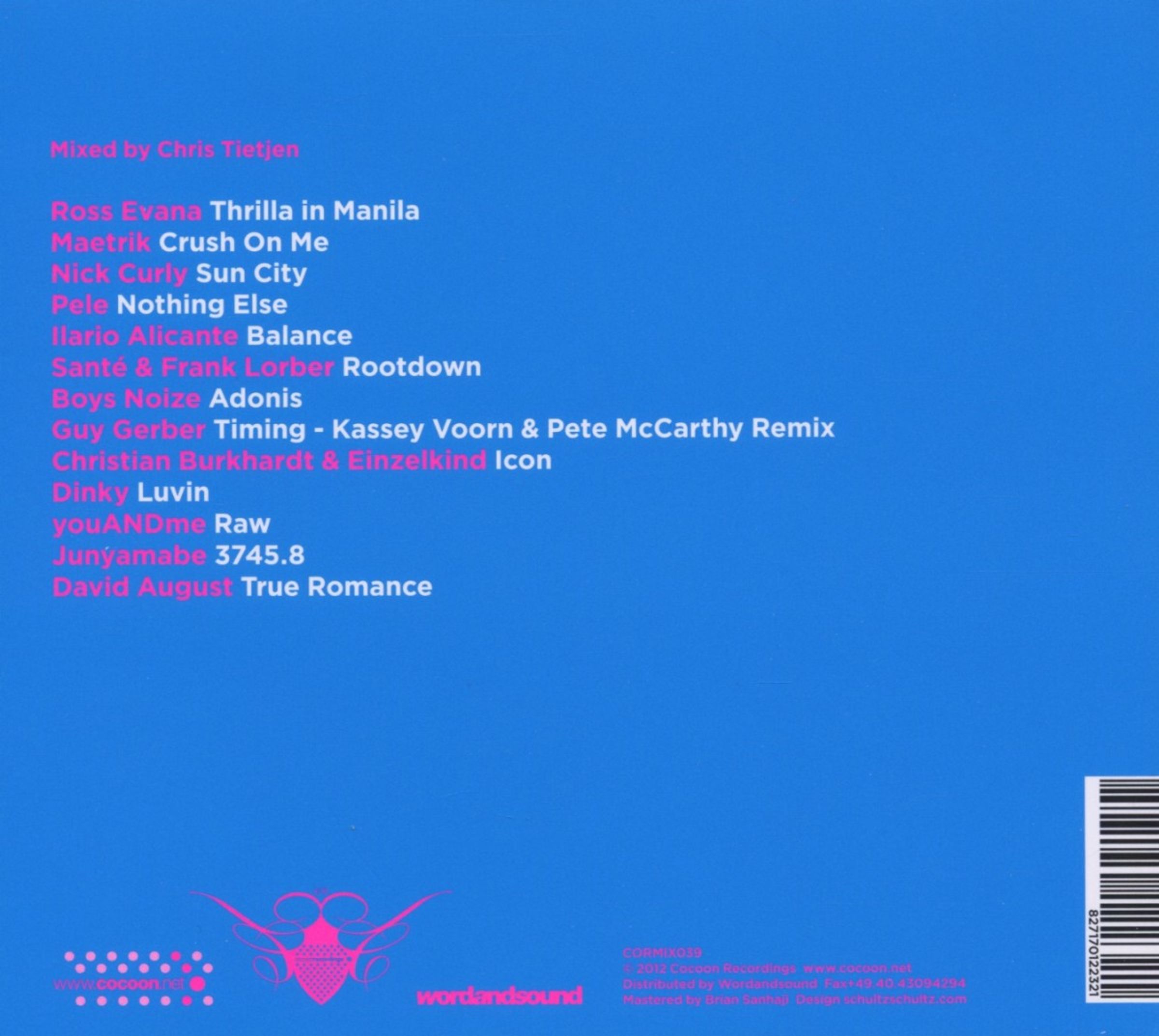 Das verflixte siebte Jahr vermag Chris Tietjen nichts anzuhaben. Gewohnt souverän packt der 27-jährige Frankfurter DJ die versammelten Juwelen der letzten zwölf Monate bei Cocoon Recordings zu einem fulminanten Parforceritt zusammen, und wieder einmal wird erst in dieser 77-minütigen Gesamtschau so richtig klar, wie viele grandiose Clubmomente da im Hause Cocoon im vergangenen Jahr zusammenkamen. Maetriks düster-deeper Partikel-House "Crush On Me" spielt dabei natürlich eine herausragende Rolle, aber auch Nick Curlys analog-bassbetonte Hi-NRG-Attacke "Sun City" wurde in den Leser-Jahrescharts 2011 des Groove Magazins zu Recht hoch gehandelt. Mit dabei sind außerdem Peles Dubtech-Monster out of Rosenheim ("Nothing Else"), die spannende Überarbeitung des Guy Gerber-Klassikers "Timing" von den beiden Athener DJs Kassey Voorn und Pete McCarthy, Dinkys überraschend dirty und songgeneigte Liebeserklärung aus der K-Compilation ("Lovin") und natürlich darf die Ibiza-Hymne 2011 von Boys Noize ("Adonis") ebenfalls nicht fehlen.