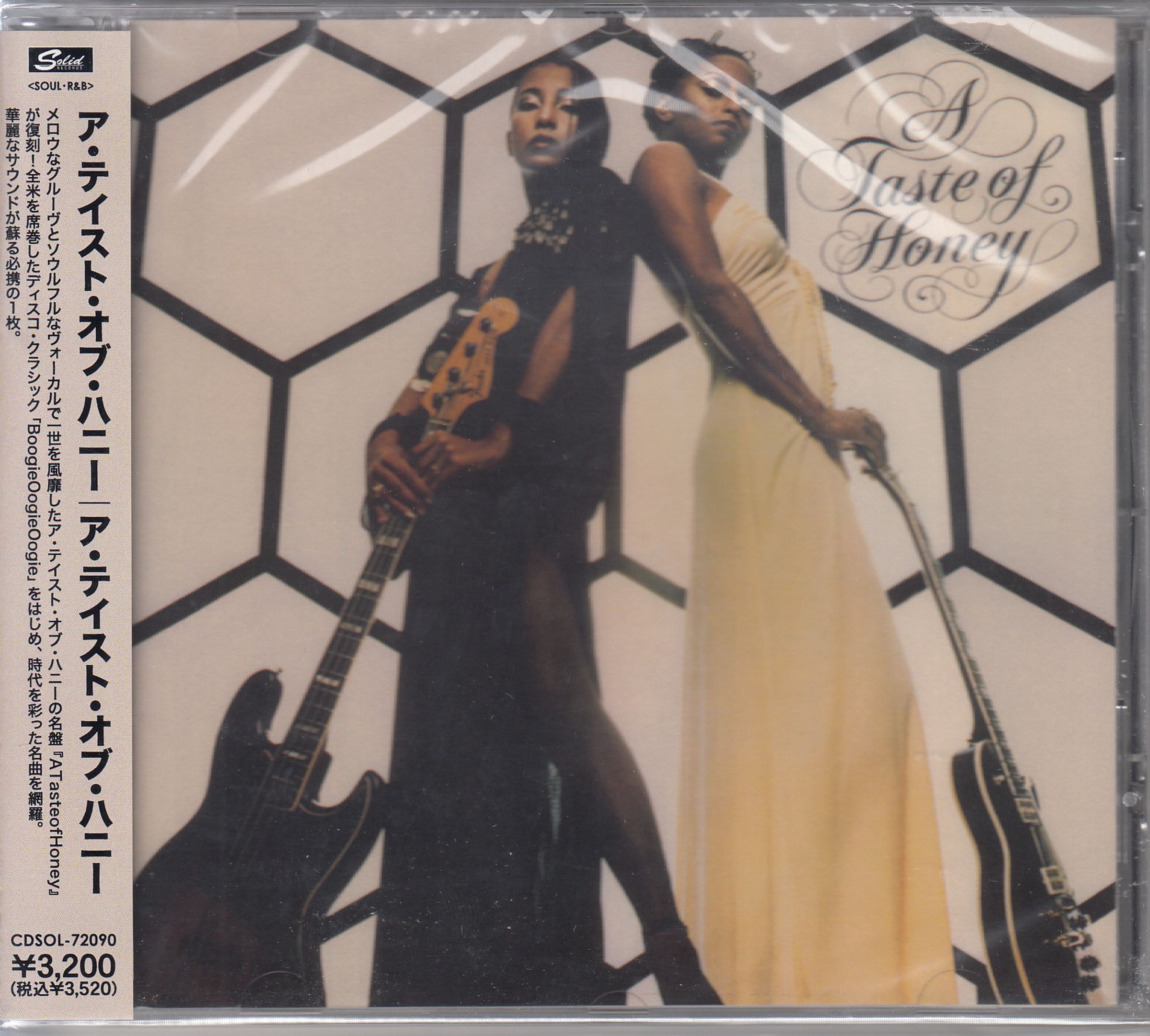 Japanische Schrift links, rechts "A Taste of Honey". Zwei Personen mit Gitarren vor einem Wabenmuster-Hintergrund., CD