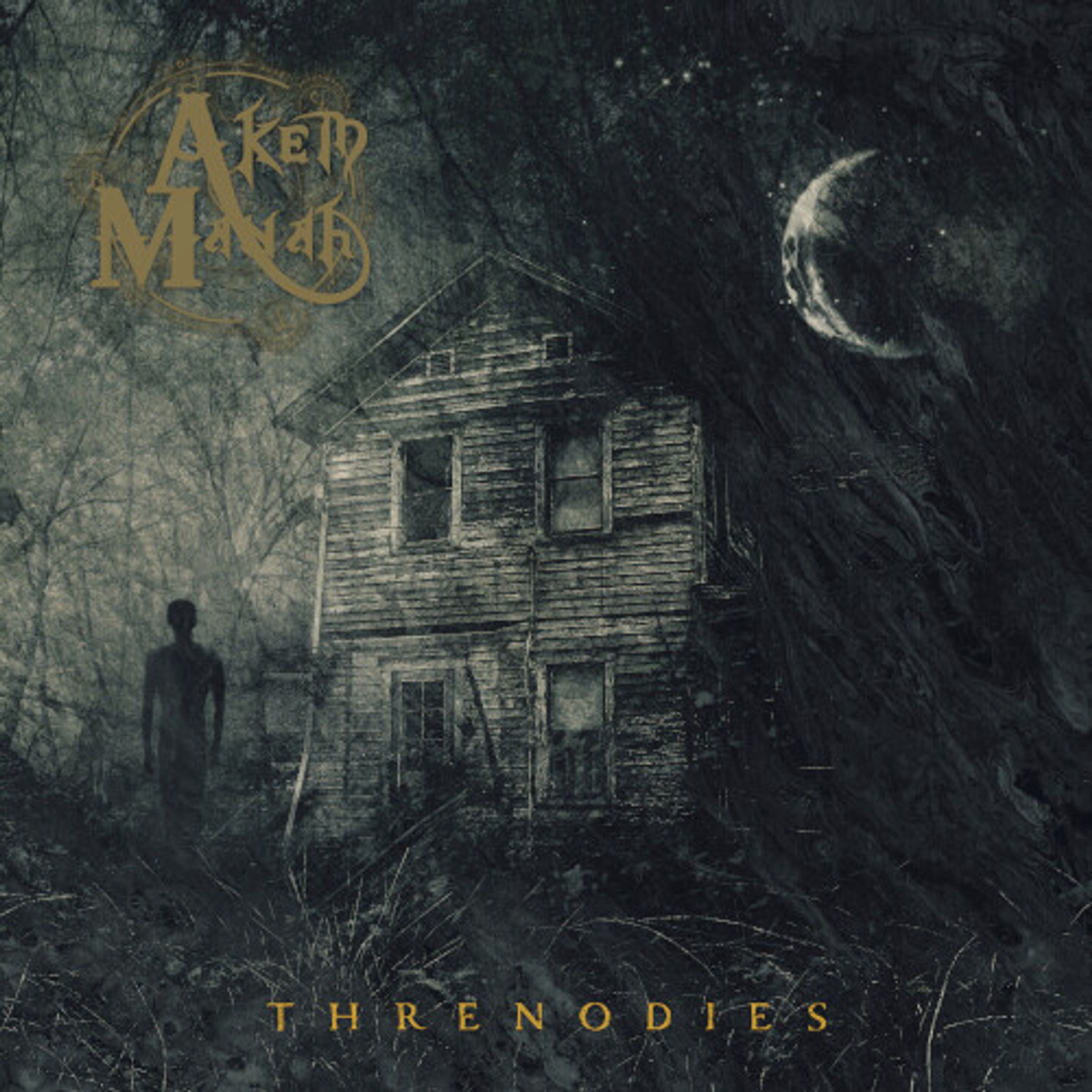 "AKHENATEN" und "THRENODIES" stehen auf einer düsteren Illustration eines alten Hauses bei Nacht mit Halbmond und Schatten., CD