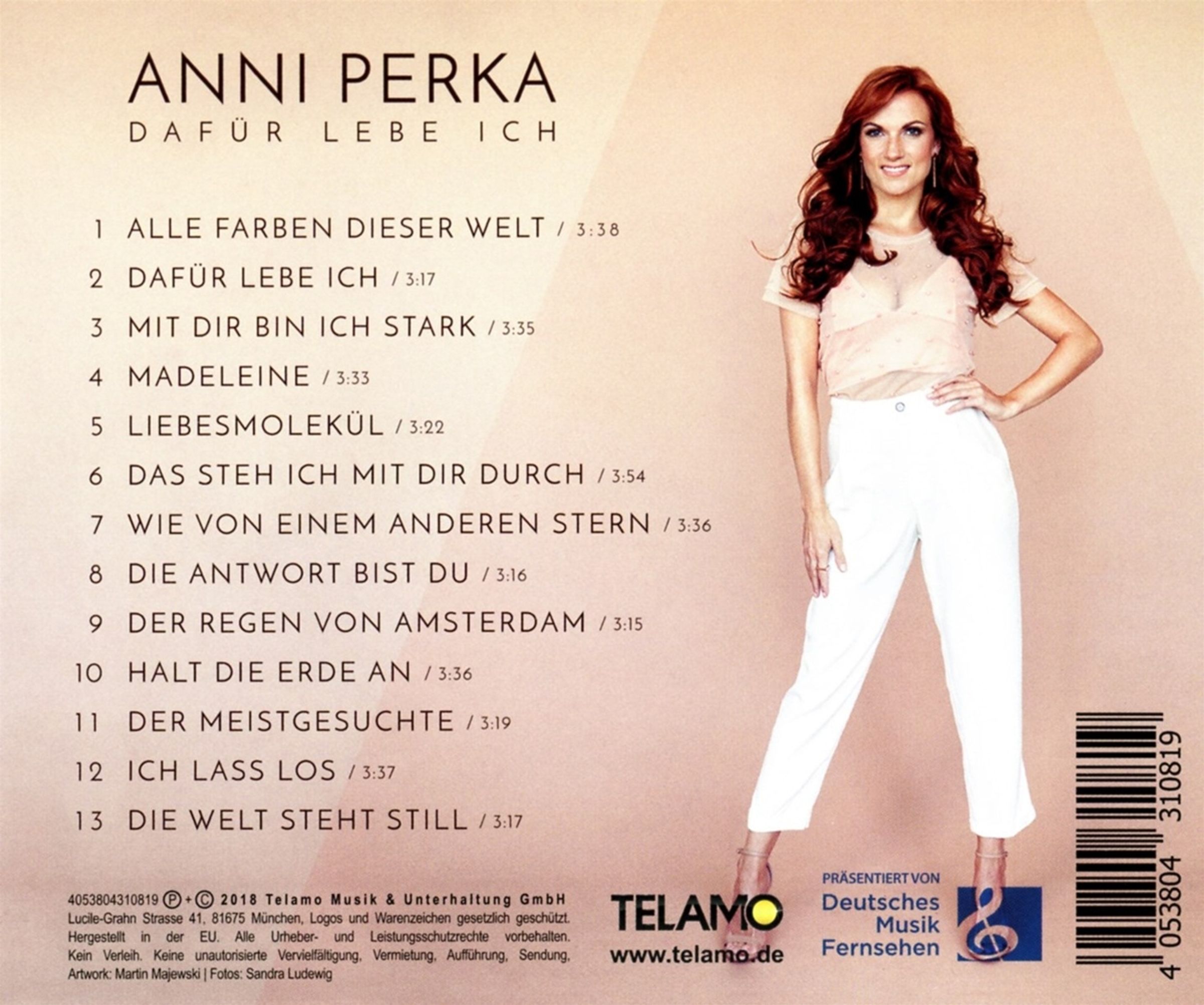 Hatte sie zuletzt die Wartezeit auf dieses neue Album vor rund einem Jahr mit einer um gleich vier Titel erweiterten Geschenkedition des Debüts verkürzt, sind es nun 13 brandneue Titel, mit denen sie das emotionale Spektrum ihres Sounds abermals erweitert: von Popschlager-Hymnen bis hin zu verträumten Balladen, von epischen Melodien über puren Minimalismus bis hin zu 100% tanzbaren Tracks ist alles dabei auf »Dafür lebe ich« – und fest steht: Anni Perka liebt die Vielfalt, das Tanzen, das Sich-fallen-Lassen, das Träumen.