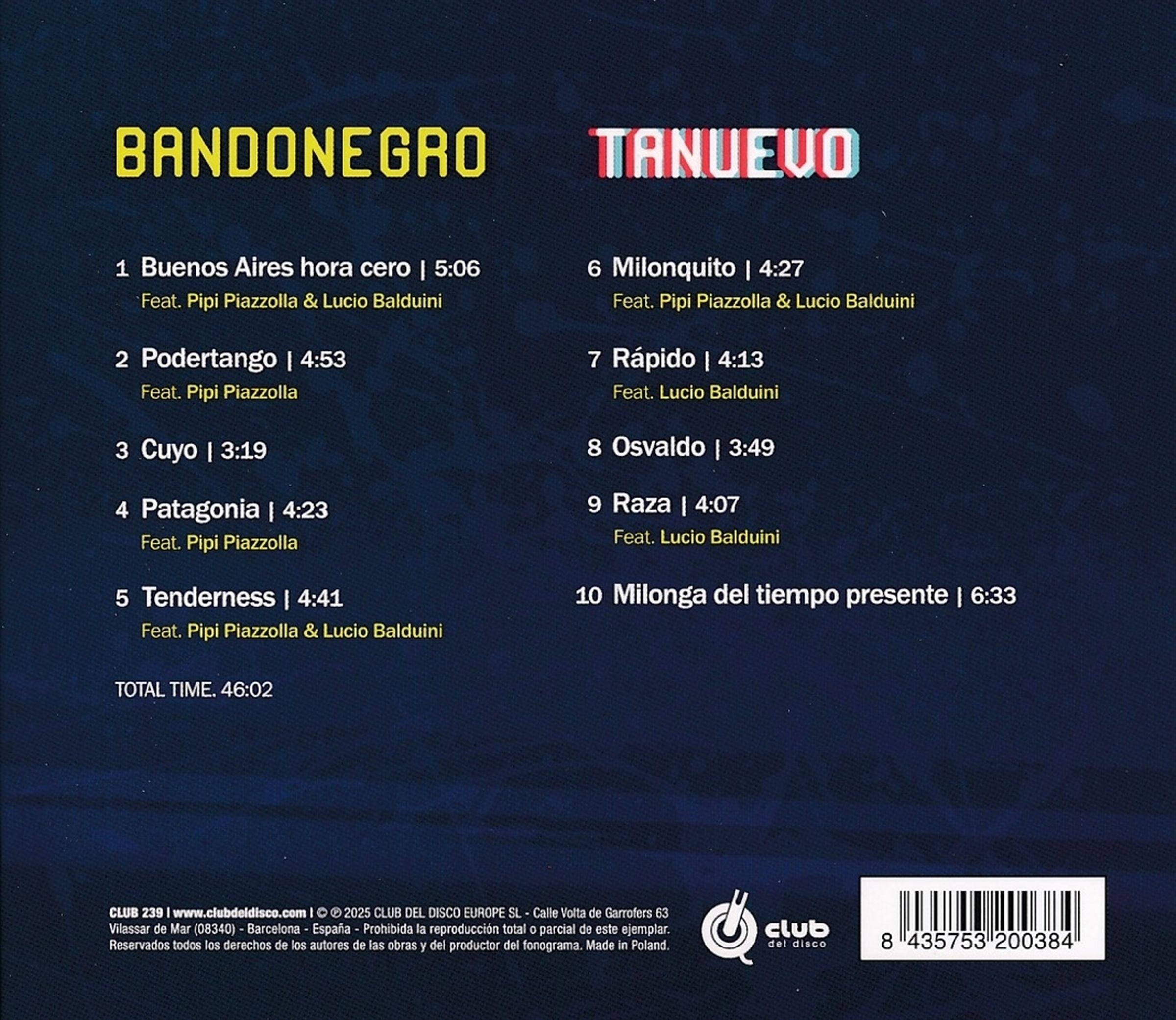 »Bandonegro beherrscht das traditionelle Tango-Nuevo-Metier meisterhaft, ergänzt dies jedoch mit Jazz und Minimal- Music. Energetisch und melancholisch.« (GoodTimes, Oktober/November 2025)Tracklisting