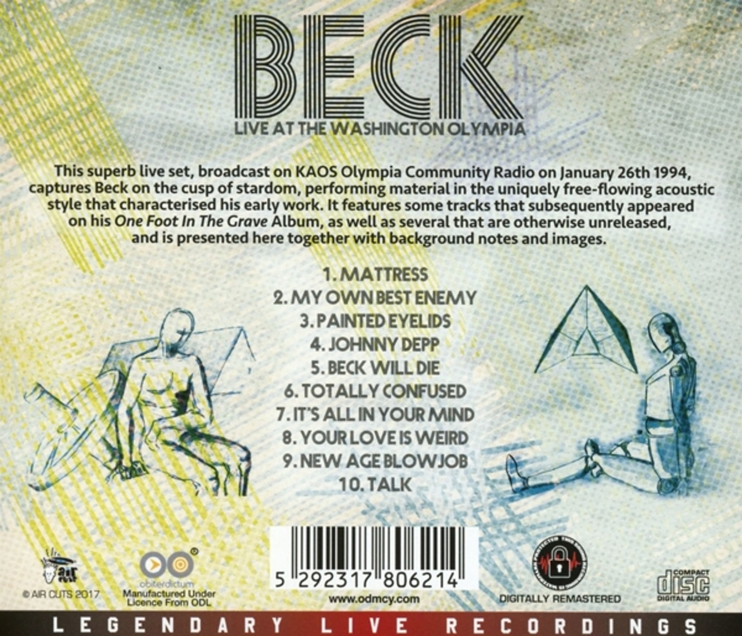 Der nun als Live-Mitschnitt vorliegende Gig wurde 1994 in Washington mitgeschnitten und von Radio KAOS gesendet. Er entstand weitgehend akustisch und enthält diverse Songs des ›One Foot In The Grave‹-Albums, das Beck mit Scott Plouf für K Records eingespielt hat.