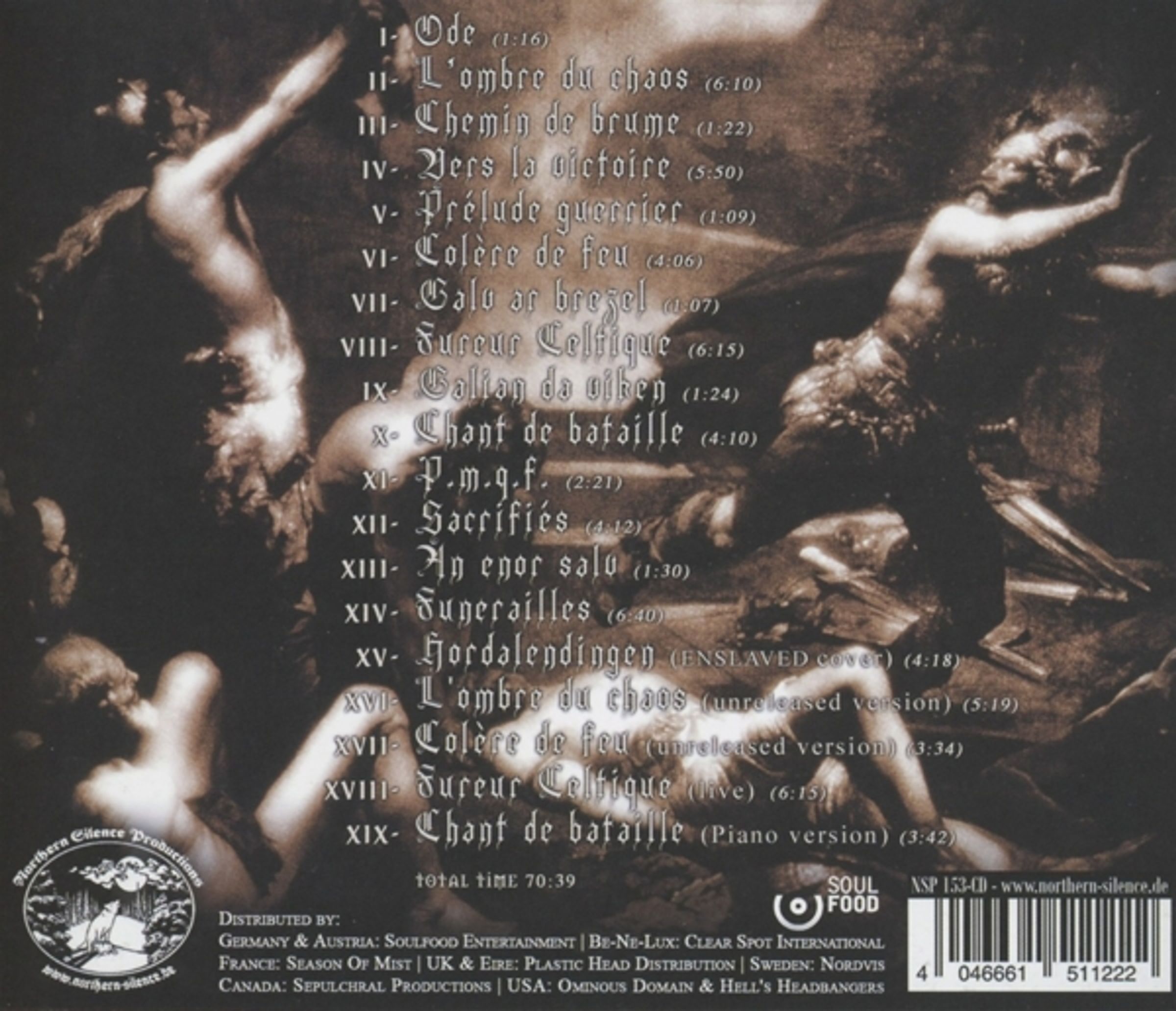 »Chants de Bataille«, Belenos' ursprünglich drittes Album, wurde zuerst 2006 veröffentlicht, und ist seit vielen Jahren nicht mehr erhältlich. Es wurde nun in einer remasterten Version neu aufgelegt, und enthält neben dem verbesserten Layout fünf zuvor unveröffentlichte Bonustracks.
