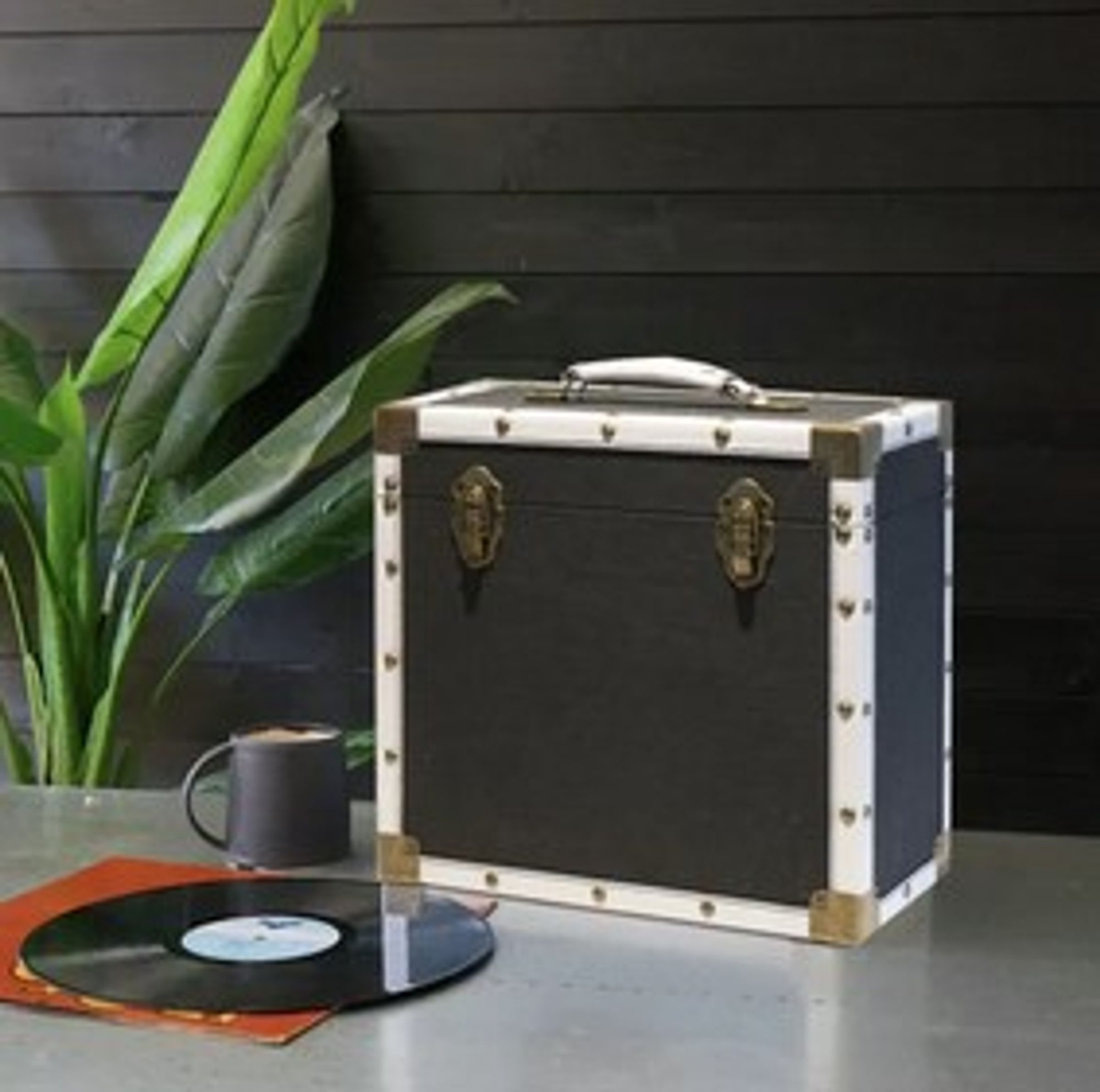 Steepletone 12" LP Record Storage Carry Case (Black Cloth & White Leather)