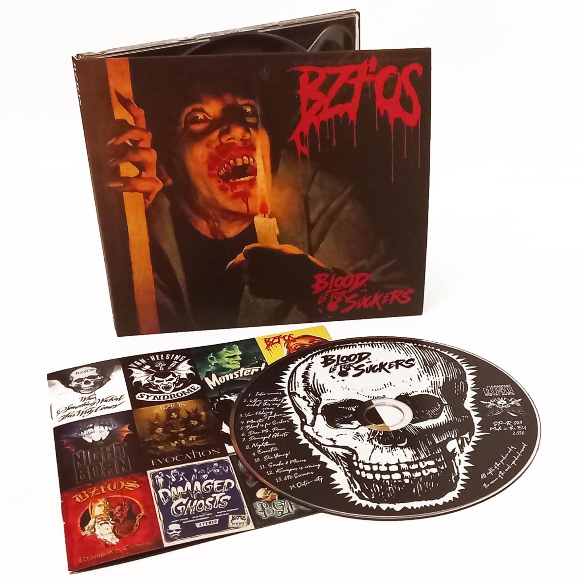 „Blood Is For Suckers“ - fast 25 Jahre nach ihrer Gründung präsentieren die höchst beliebten Wiener Horror-Shock-Rocker ihr nächstes Studioalbum auf dem eigenen Label Schlitzer-Pepi. CD im Digipack mit Booklet, limitierte LP-Erstauflage in orangenem Vinyl im Gatefoldcover. Düsterer, druckvoller und energiegeladener als je zuvor: mit „Blood Is For Suckers“ präsentiert die Shockrock-Institution ein Album, das mühelos rohe Punkenergie mit dunklem Gothrock und eingängigen Melodien verbindet, tief mit den eigenen Wurzeln verbunden. Wuchtige Bässe, treibende Drums und kantige Gitarren bilden das Fundament für Songs, die Horrorfan-Herzen wie gewohnt höher schlagen lassen werden, und dabei Raum und Tiefe haben. Der über zwei Jahrzehnte lang gereifte Zombie-Spirit zeigt sich hier in neuer Form: Gereifter, präziser und atmosphärischer, doch mit der gleichen Energie, die BZfOS seit jeher auszeichnet.