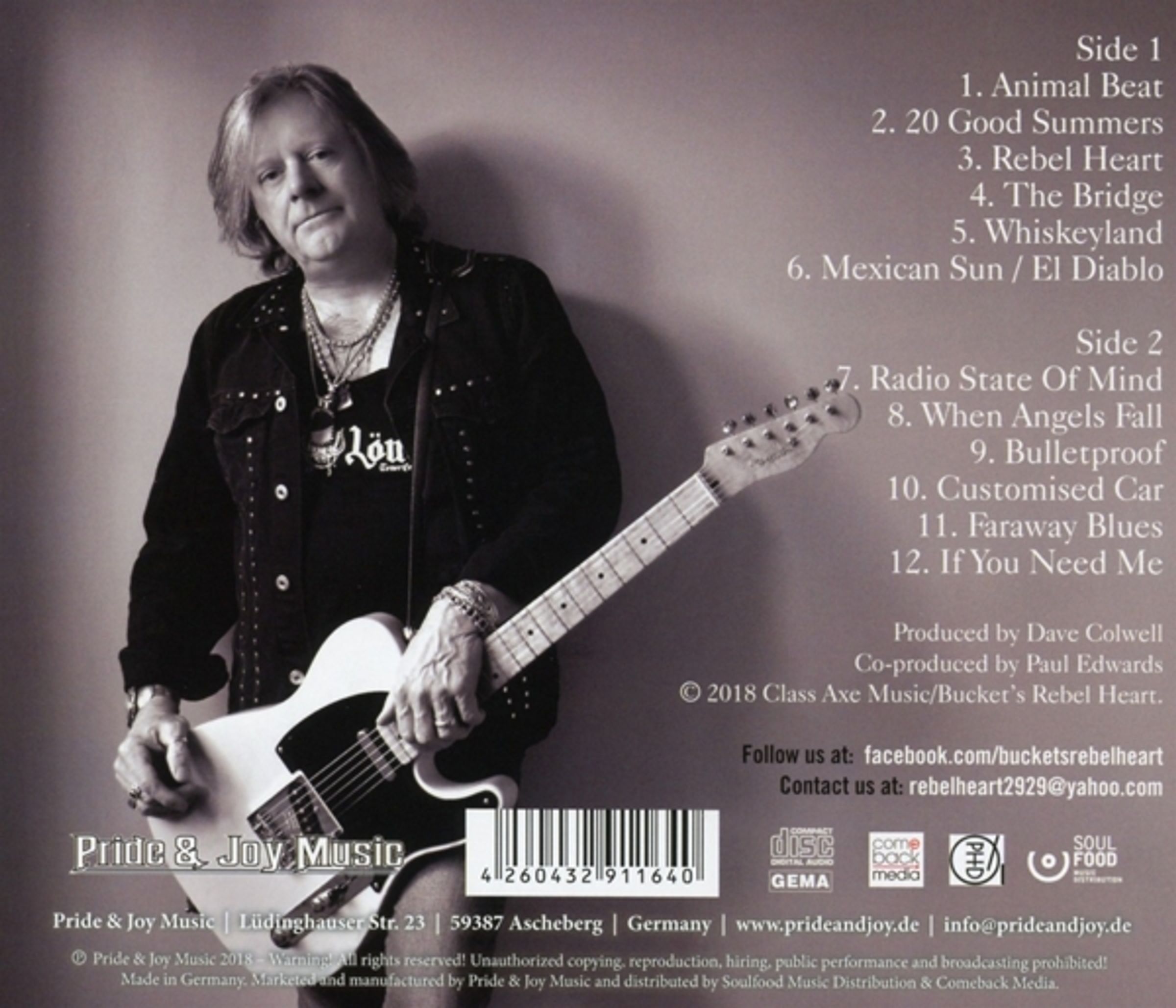 Buckets Rebel Heart ist die neue Band des ehemaligen Bad Company und jetzigen Humble Pie-Gitarristen Dave »Bucket« Colwell und des früheren 720- & New Torpedoes-Schlagzeugers Paul »Taff« Edwards. Komplettiert wird das Line-Up durch Lead-Sänger Jim Stapley und Bassist Dave »Boycie« Boyce (ex The Quireboys).