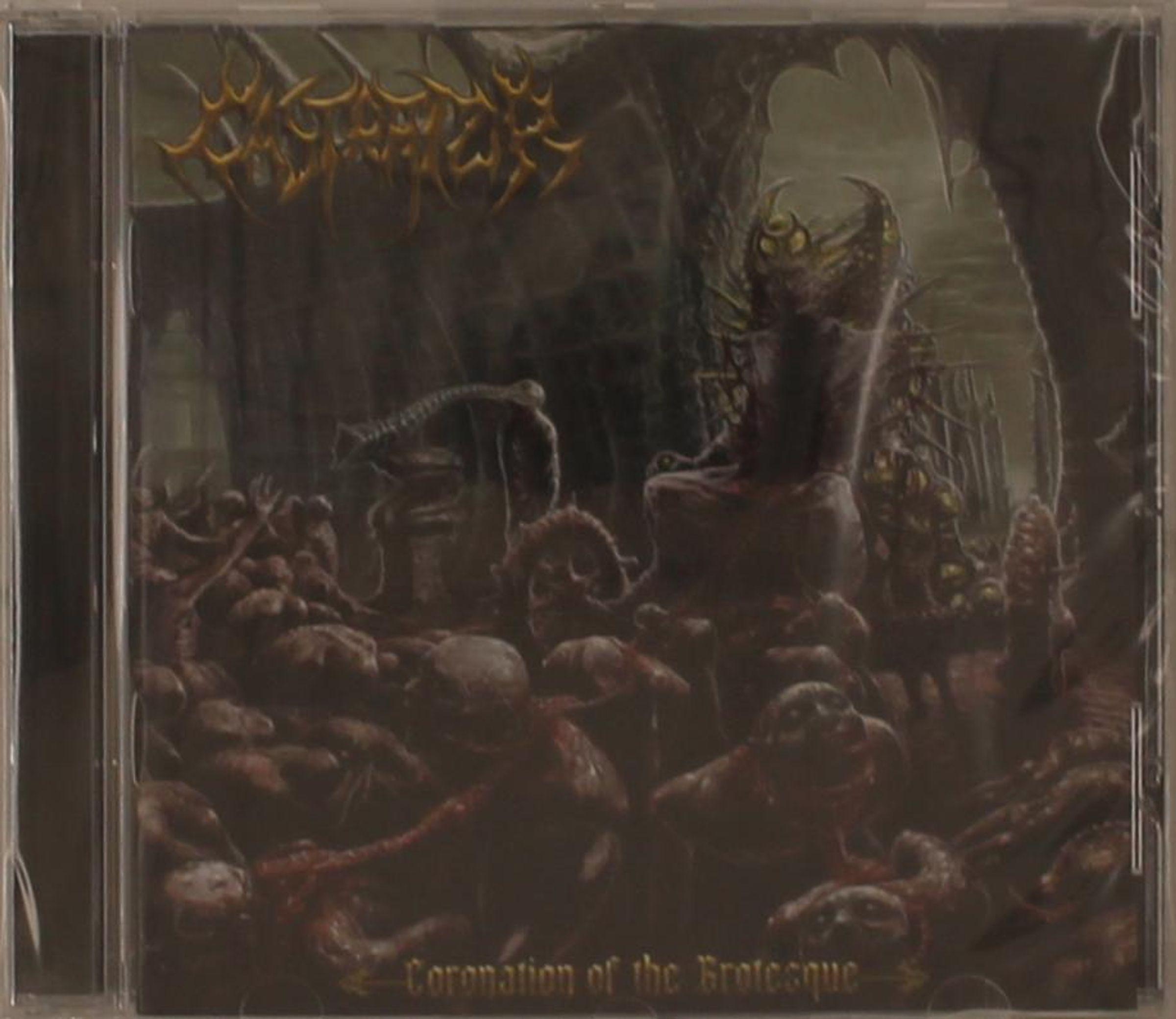 Es steht "Coronation of the Grotesque". Das Bild zeigt düstere Kreaturen in einer unheimlichen, dunklen Umgebung., CD