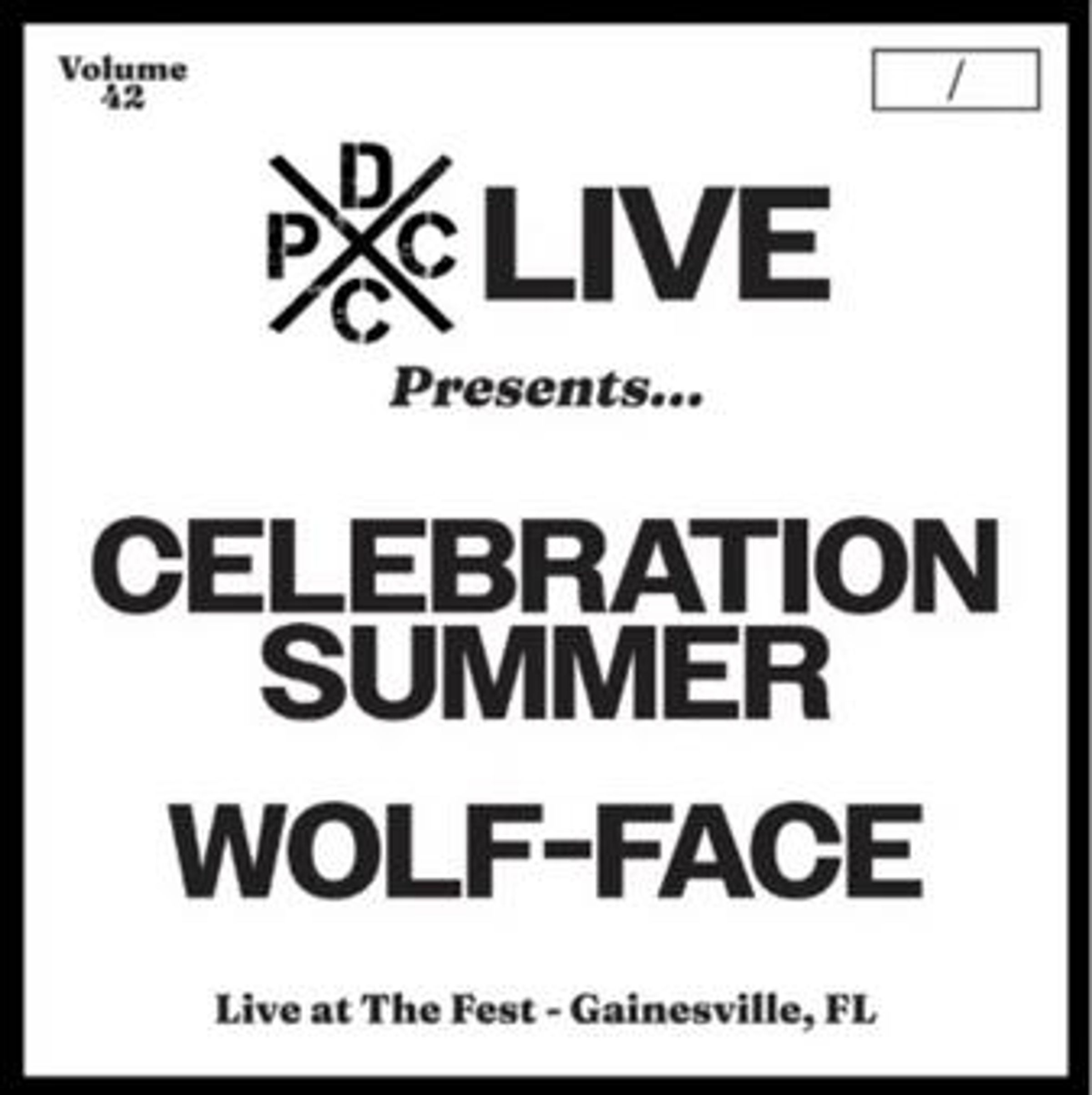 Texte: "Volume 42", "DPC LIVE Presents... CELEBRATION SUMMER WOLF-FACE", "Live at The Fest - Gainesville, FL". Quadratisches Design., LP