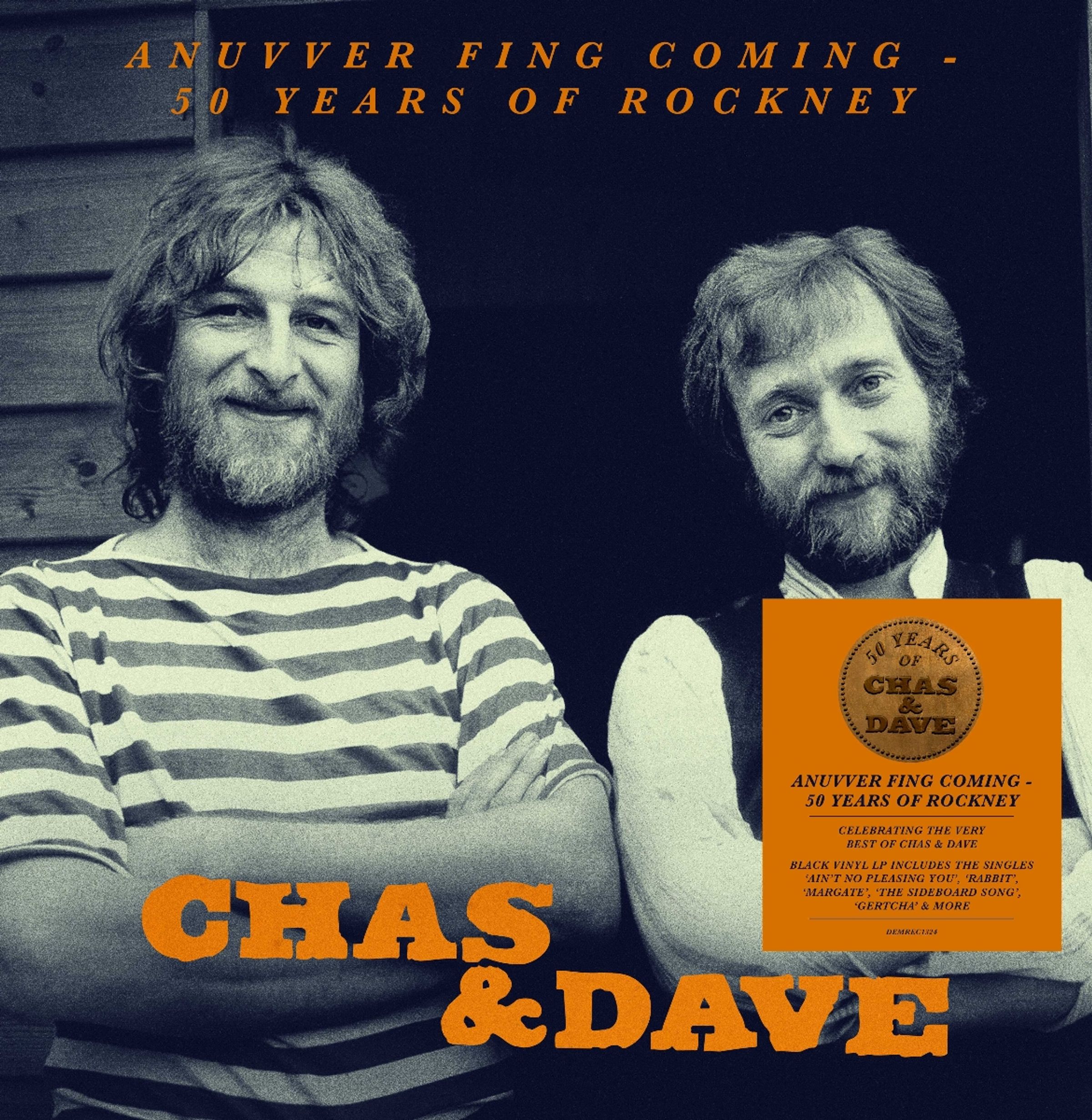 Text: "ANUVER FING COMING - 50 YEARS OF ROCKNEY", "CHAS & DAVE." Zwei Männer in Schwarz-Weiß, lächeln., 2 CDs