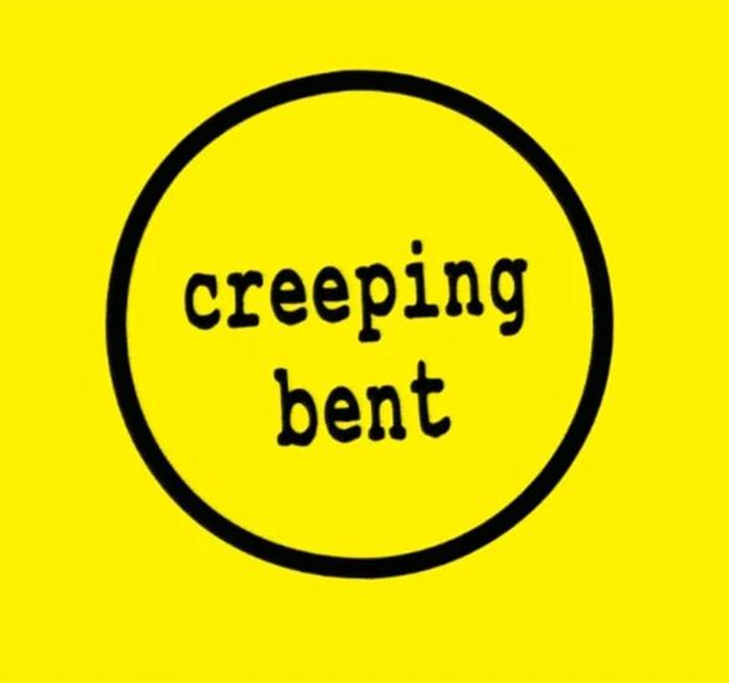 Text "creeping bent" in einem schwarzen Kreis auf gelbem Hintergrund., CD