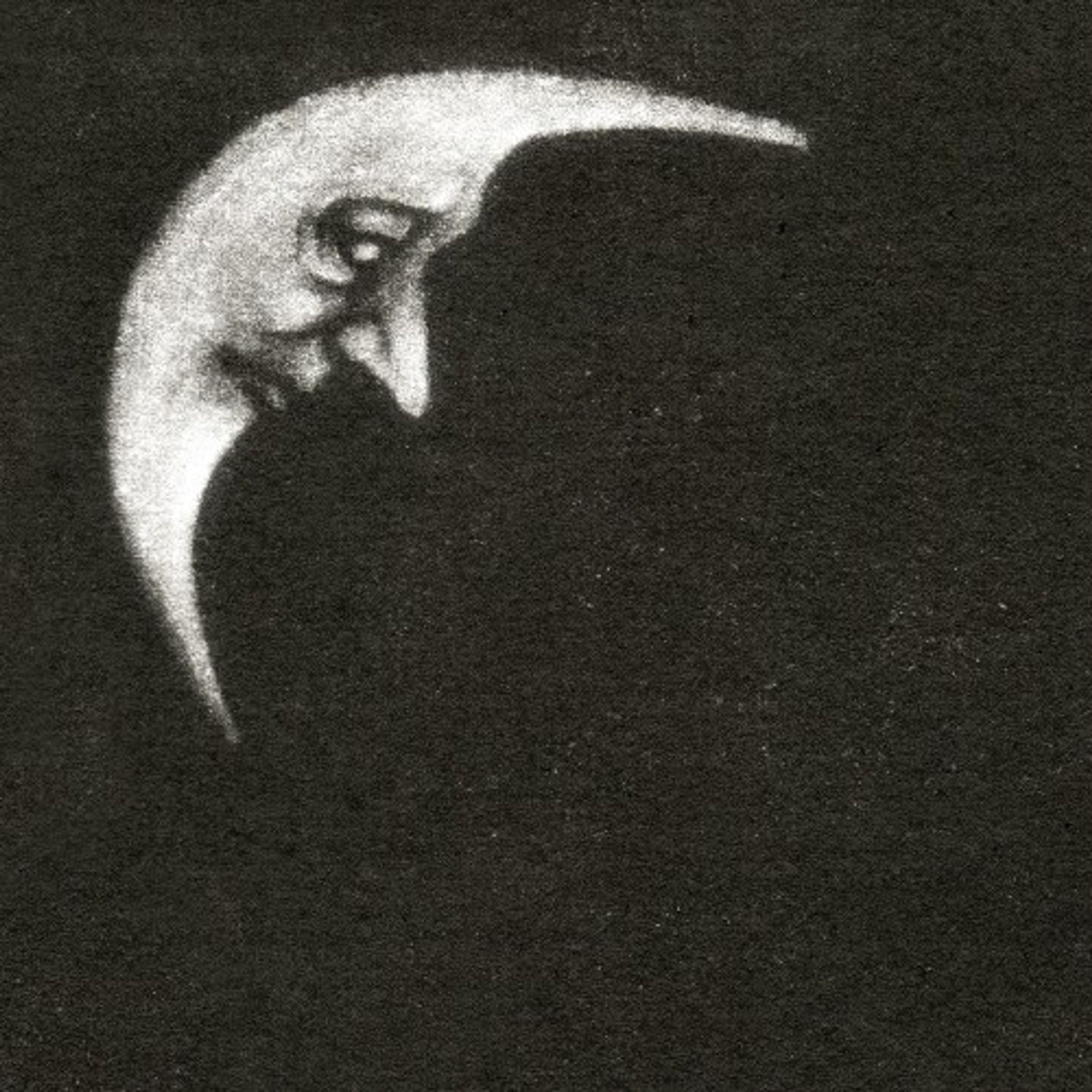 Kein Text erkennbar. Illustration eines Mondes mit menschlichem Gesicht, in einer sichelförmigen Darstellung auf dunklem Hintergrund., CD