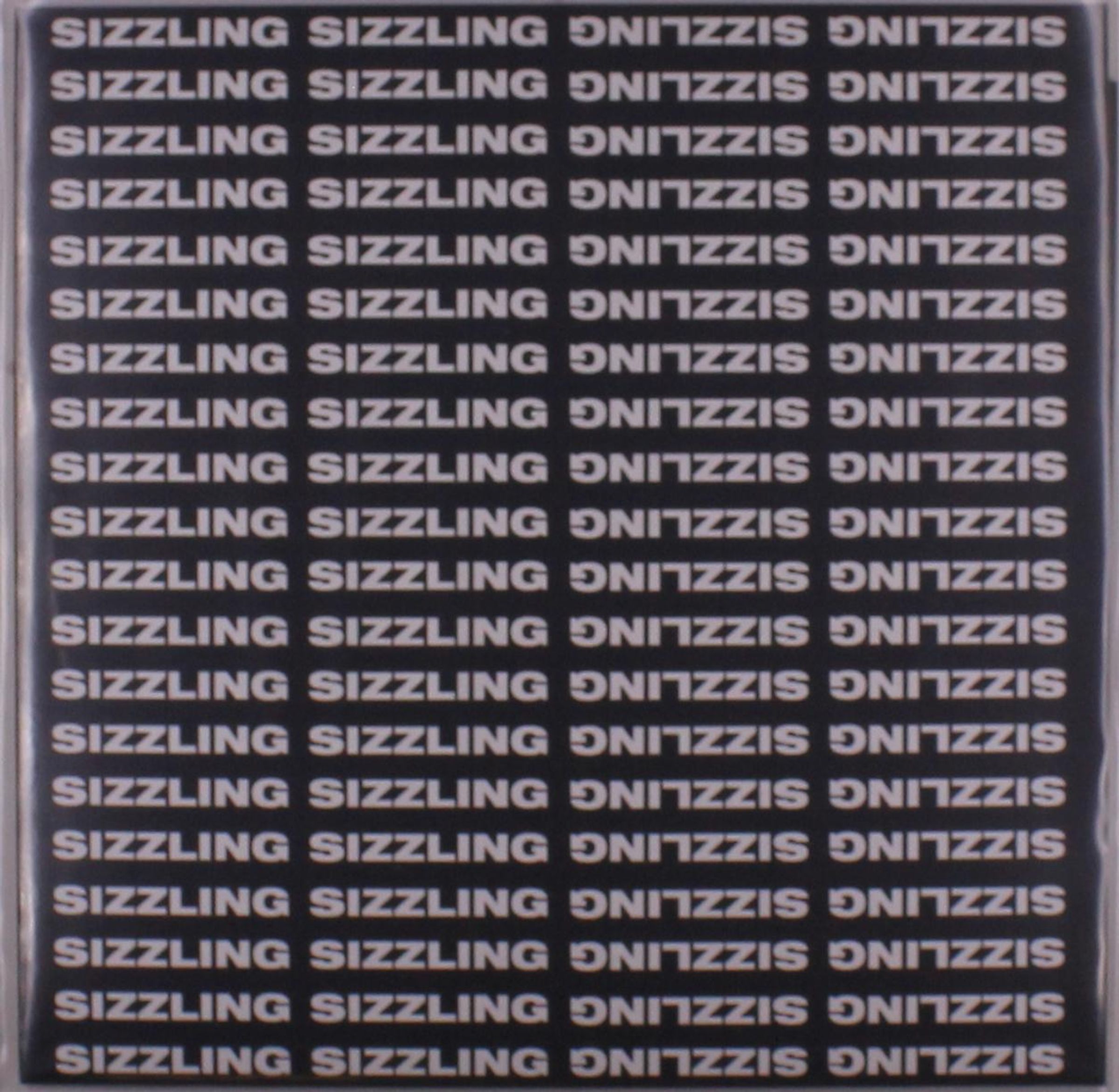 Ein sich wiederholender Schriftzug: "SIZZLING" und "GNILZZIS" umgekehrt nebeneinander in weiß auf schwarzem Hintergrund., LP
