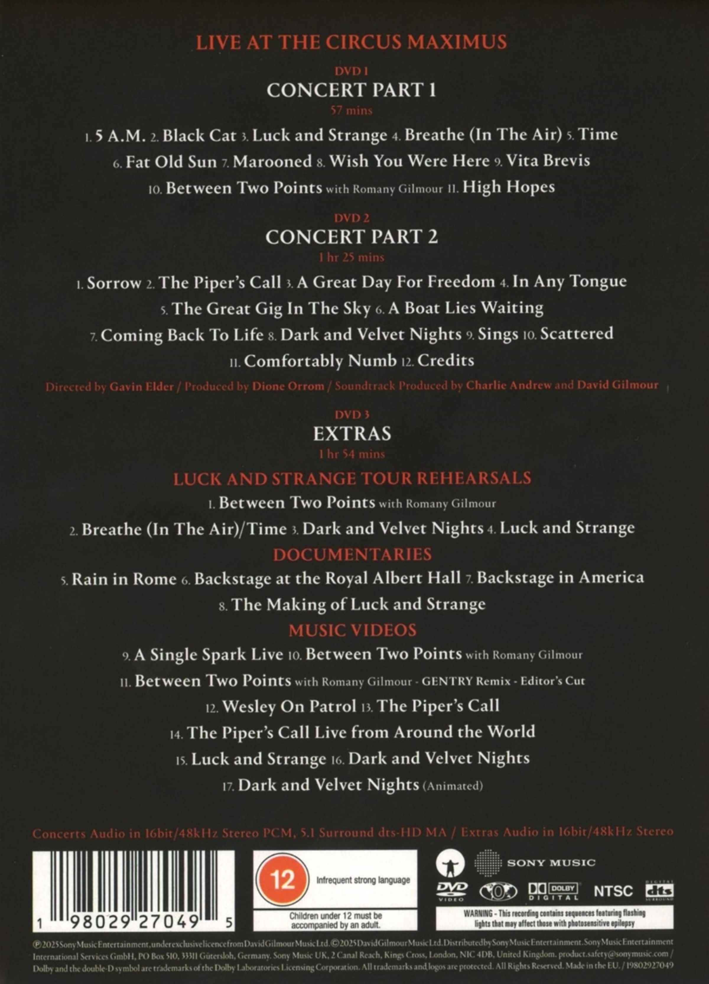 Von der gefeierten »Luck and Strange Tour«, dem Konzert, das im Circus Maximus in Rom gefilmt wurde, sowie einem Audiokonzert mit Tracks der Tour, zusätzlichen Dokumentationen hinter den Kulissen, Aufnahmen von den Tourproben und Musikvideos. Film unter der Regie von Gavin Elder. Soundtrack und Konzertsound produziert von Charlie Andrew und David Gilmour.